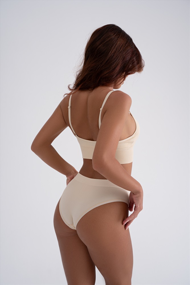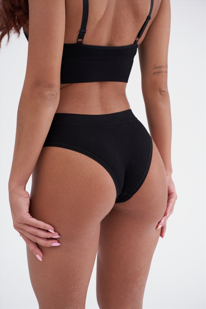 Трусы бразилиано со средней посадкой от бренда Madamoda, выполненs из вязаного полотна в рубчик. Пояс изделия выполнен из двойного основного полотна, ножки изделия обработаны пришивной мягкой эластичной резинкой. Ластовица из 100% хлопка.