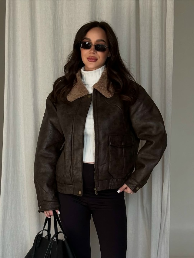 стильная укороченая дубленка🤎