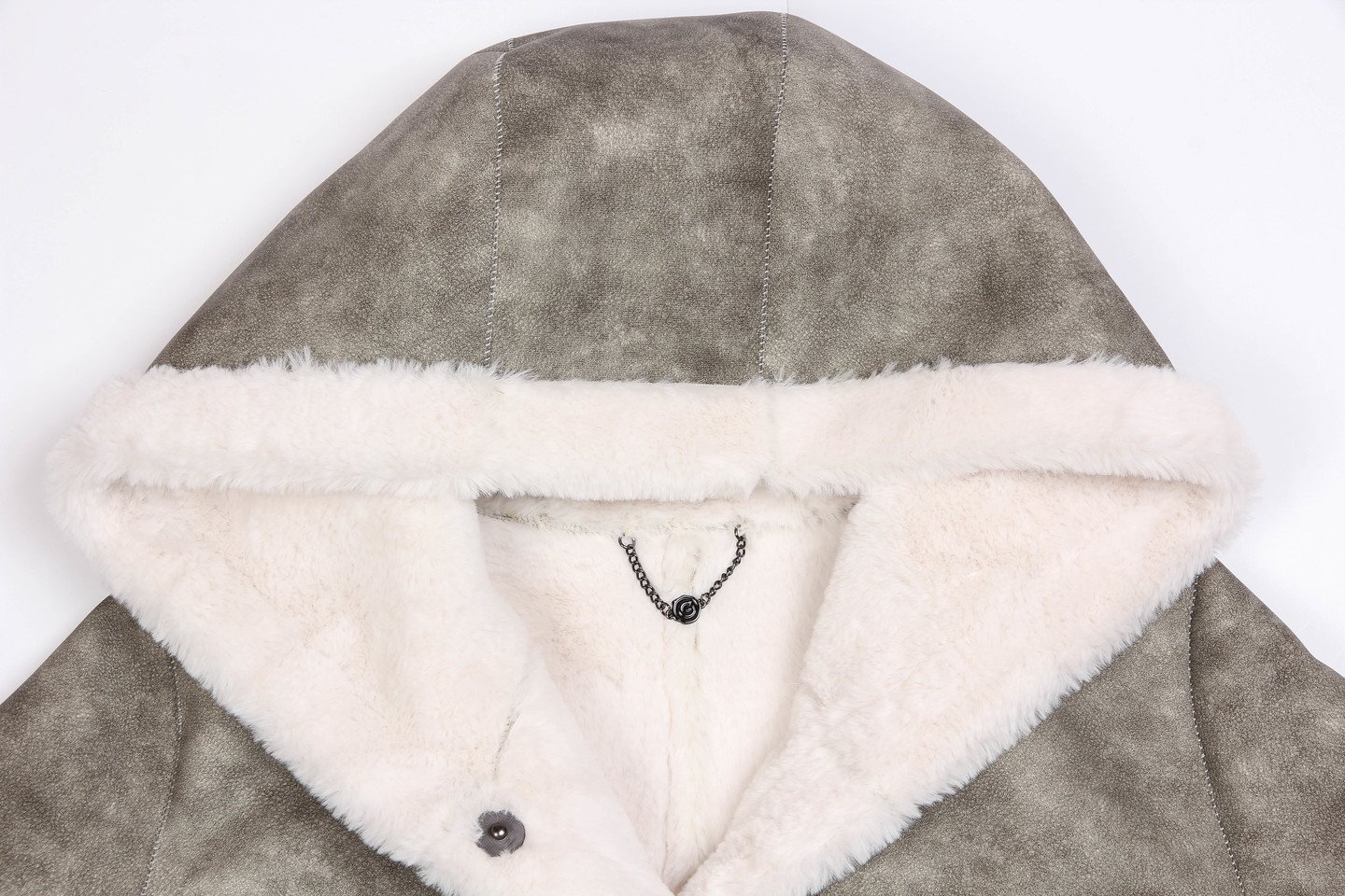 морозе. Дубленка с капюшоном идеальна для повседневных образов в стиле кэжуал или
