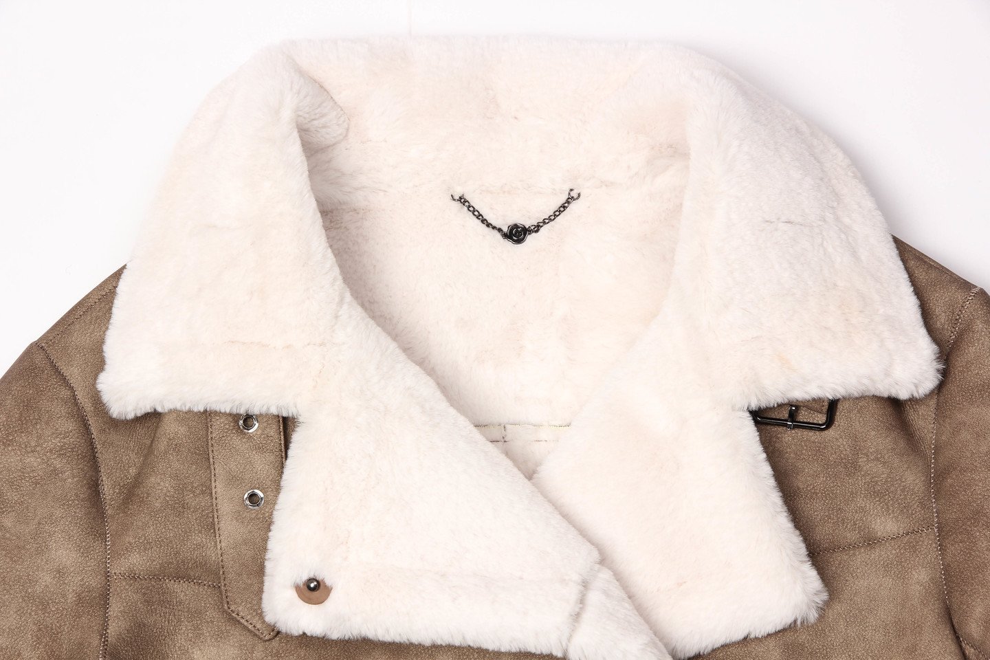 Дубленка из экокожи и экомеха пользуются невероятной популярностью, их очень часто можно увидеть на подиумах известных брендов. Дубленка-авиатор является базой и обожаема многими девушками и стильными женщинами. Благодаря своей универсальности эта модель очень надолго с нами и будет актуальна из сезона в сезон. Особенно стильно смотрятся дубленки с объемными меховыми контрастными швами, это используется, как отделка. Сезон 2024—2025 — это время объемов, поэтому спущенный крой плеча и размер на один-два больше, чем ваш, часто используются дизайнерами. Именно так мы добиваемся необходимого эффекта. Дубленка застегивается на крупные кнопки, что очень удобно и практично. Можно застегнуться до верха или красиво разложить лацканы. Также один из главных трендов этого сезона — высокие воротники. Этот элемент не только делает дубленку визуально интереснее, но и помогает эффективнее утеплиться. Воротник застегивается на хлястик с пряжкой. Сбоку у модели также имеются хлястики, которые можно затянуть при необходимости и смоделировать силуэт. Рукав загибается на манжет. Эта модель точно станет выгодной инвестицией в гардероб, поскольку «авиаторы» давно вышли за рамки трендов и превратились во вневременную классику. Носить такую дубленку можно будет с платьями, спортивными костюмами, с мешковатыми джинсами и с классическими брюками. Это универсальный вариант для теплой зимы и холодной осени. Температурный режим до -15
