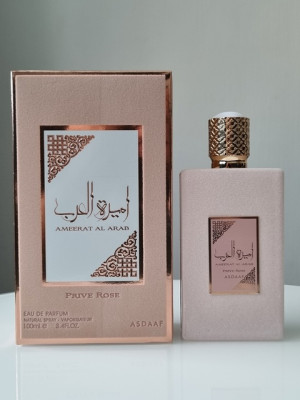 Ameerat Al Arab Prive Rose Asdaaf — это аромат для женщин, он принадлежит к группе цветочные фруктовые. Это новое издание: Ameerat Al Arab Prive Rose выпущен в 2023 году. Верхние ноты: Клубника, Виноград и Апельсин; средние ноты: Роза, Белый мускус, Жасмин, Гардения, Иланг-иланг и Лилия; базовые ноты: Бобы тонка, Амбра и Сандал