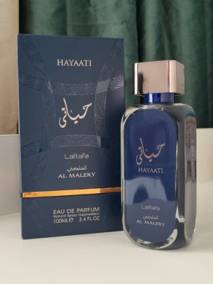 Hayaati Al Maleky Lattafa Perfumes — это аромат для мужчин и женщин, он принадлежит к группе восточные пряные. Это новое издание: Hayaati Al Maleky выпущен в 2022 году. Верхние ноты: Розовый перец, Мускатный орех, Бергамот и Имбирь; средние ноты: Кедр, Древесные ноты, Ладан и Лабданум; базовые ноты: Мускус, Амбра и Серая амбра.