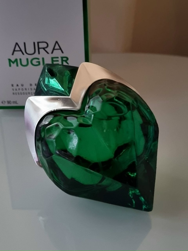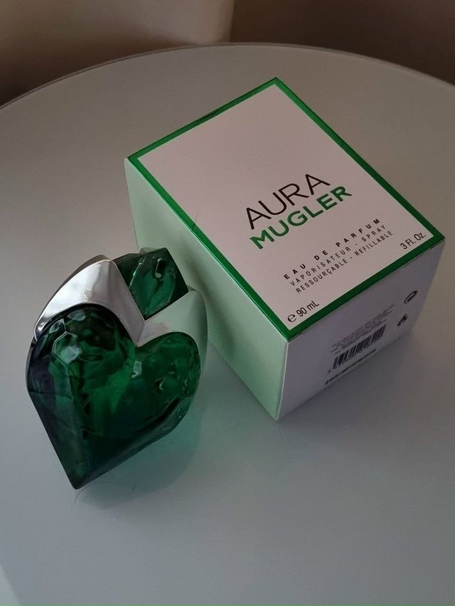 Aura Mugler Mugler — это аромат для женщин, он принадлежит к группе восточные. Aura Mugler выпущен в 2017 году. Aura Mugler был создан Daphné Bugey, Amandine Clerc-Marie, Christophe Raynaud, Marie Salamagne и Olivier Cresp. Верхние ноты: Лист ревеня и Бергамот; средние ноты: Зеленые ноты, Цветок апельсина, Иланг-иланг и Груша; базовые ноты: Бурбонская ваниль, Древесные ноты, Amberwood, Сандал и Кумарин.