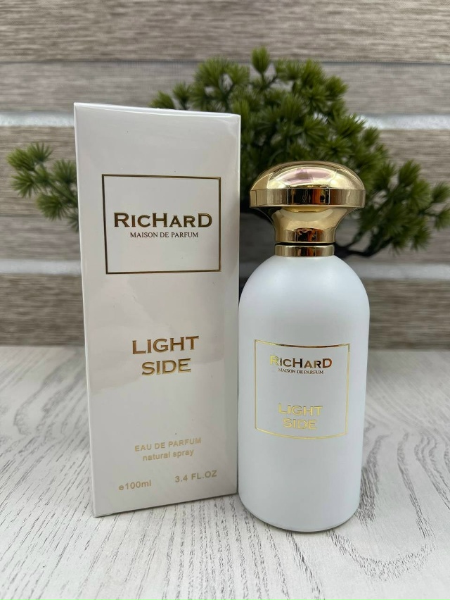 Light Side Richard — это аромат для женщин, он принадлежит к группе восточные цветочные. Это новое издание: Light Side выпущен в 2022 году. Верхние ноты: Иланг-иланг, Бергамот и Розовый перец; средние ноты: Жасмин и Апельсин; базовые ноты: Ваниль, Амбра и Кедр.