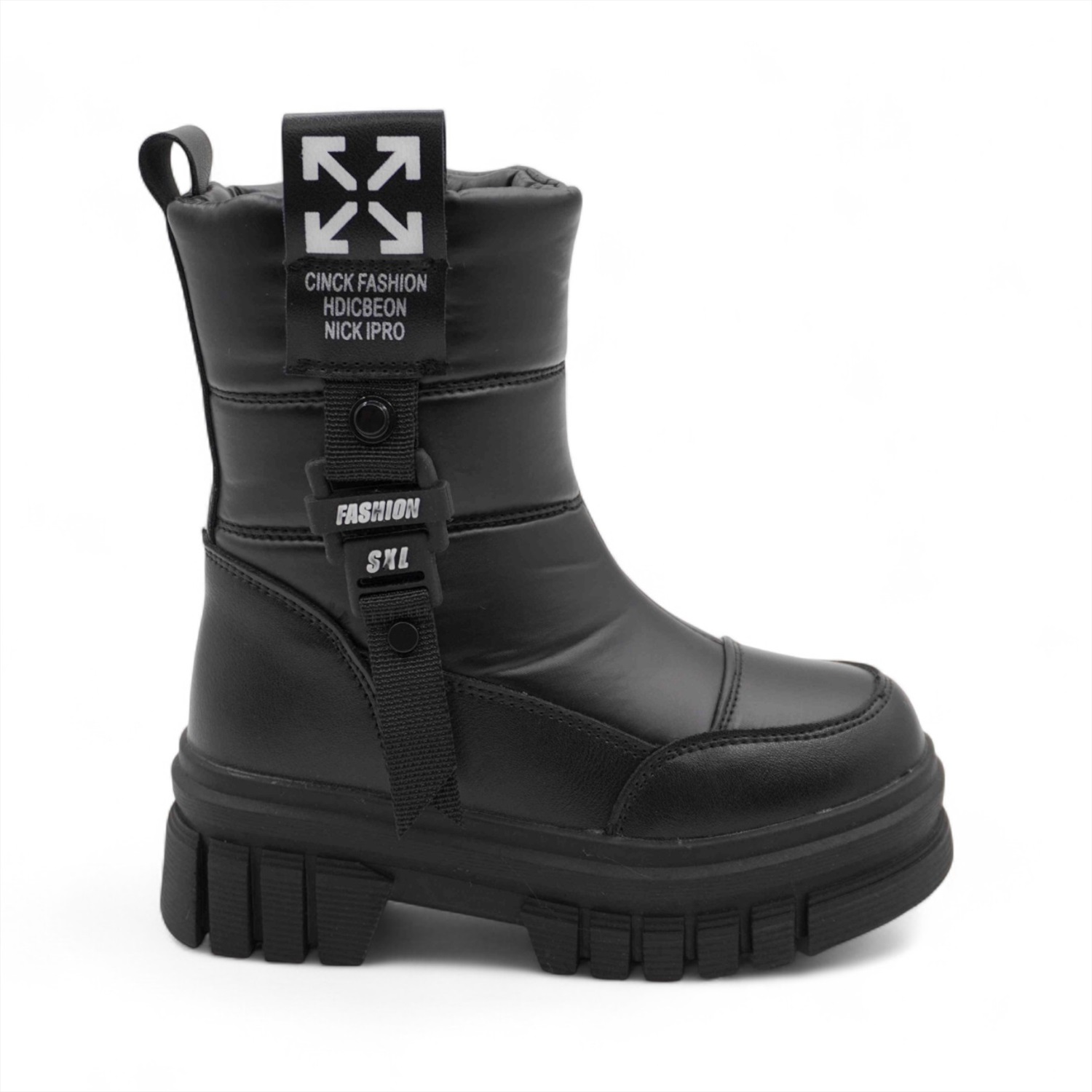 Артикул: В5006-1 черные; Внешний материал: ЭКО-кожа, Нейлон; Внутренний материал: Натуральная овечья шерсть (набивная); Осталось: 11 шт. Дутики на меху для зимы. Дутики из натуральной шерсти подарят вашему малышу комфорт и уют в холодную погоду. Стильный дизайн идеально подойдет как для прогулок по городу, так и для игр в снегу. Торговая марка: " Boncy" Сезон: Зима. Основные особенности: Застежка на молнии. Материал: Верх обуви выполнен из непромокаемого текстиля, что обеспечивает надежную защиту от снега и влаги. Вставки из экокожи дополнительно защищают мысок и пятку сапожек от механических повреждений. Комфорт: Мягкая, меховая стелька и удобная колодка обеспечивают поддержку стопы даже при длительной носке. Дизайн: современный и универсальный внешний вид, который подойдет как для прогулок, так и для активного отдыха. Фиксация:  застежка на молнии позволяют легко надевать и снимать обувь. Подошва: износостойкая подошва обладает нескользящим эффектом, хорошими амортизационными свойствами. Модель на любой взъем! Длина указана внутри стельки: 27р - 16,5см; 28р – 17,1см; 29р – 17,7см; 30р – 18,3см; 31р – 18,9см; 32р – 19,5см; Почему выбирают нас: Экологичный подход к производству. Надежная защита от непогоды. Удобство и стиль для любого возраста. Выберите дутики на меху для зимы и наслаждайтесь комфортом! Закажите сейчас с быстрой доставкой по всей стране. Не уверены в размере? Ознакомьтесь с нашей фото-инструкцией по подбору обуви.