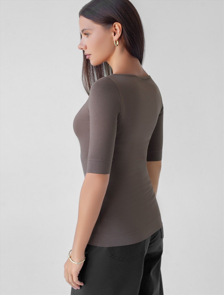 Футболка выполнена из премиального хлопка с добавлением эластана.Гладкий трикотаж обеспечит гарантированный комфорт и удобство в использовании. На рукаве металлическая нашивка с логотипом бренда. Издели будет хорошо сочетаться с любыми низами, жилетками и кардиганами, став выгодной инвестицией в базовый гардероб.