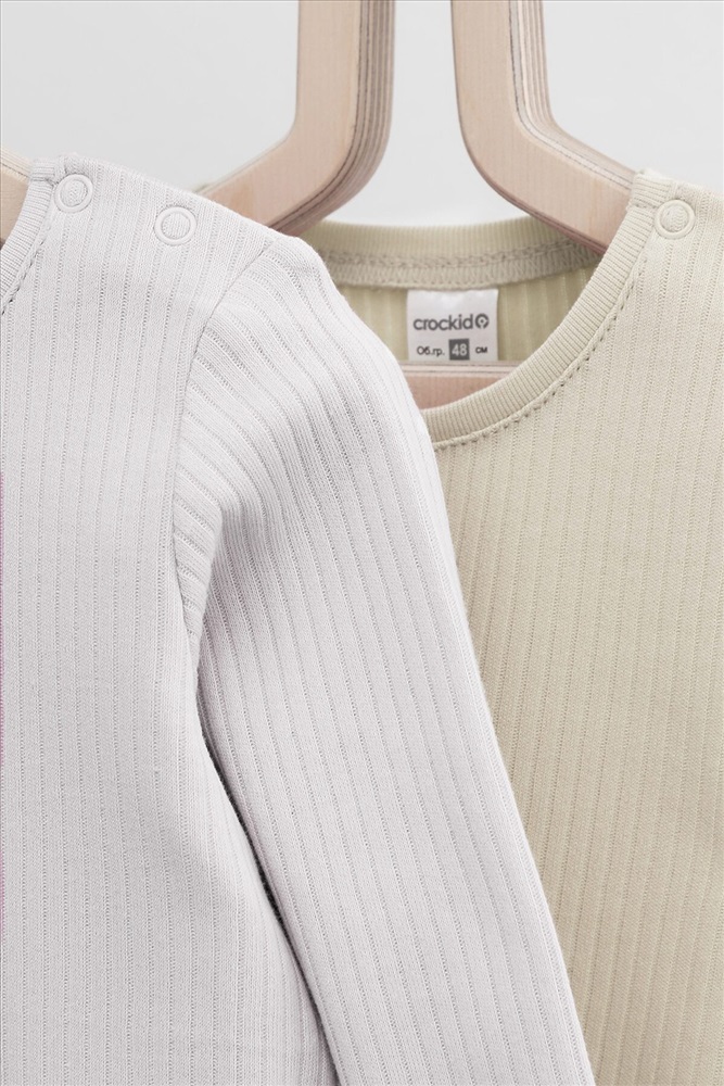 Джемперы в упаковке 2 шт для новорождённых из мягкого, эластичного трикотажа, произведённого из натурального хлопка. Изделие застёгивается на кнопки на плече. Все трикотажные полотна производятся в соответствии с нормами Швейцарского сертификата ЭкоТекс.