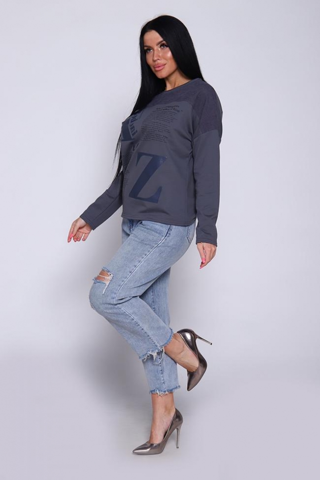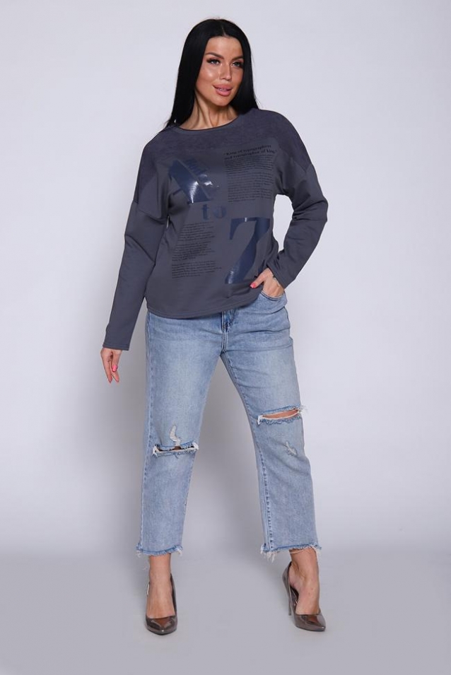 Джемпер женский из комбинированной ткани футера 2-х нитка с лайкрой качества кардэ и микровельвета. Свитшот с принтом свободного оверсайз кроя с круглой горловиной, обработанной обтачкой с открытым краем, спущенная пройма, длинный рукав. На груди кокетка из микровельвета, гармонично сочетается с принтом в виде газеты. Стильный, комфортный джемпер- отличная вещь для офисного гардероба деловых женщин любой фигуры и возраста. Широкий размерный ряд и красивые оттенки данной модели позволят вам выглядеть элегантно и привлекательно. Длина рукава в таблице измерений указана от начала горловины.