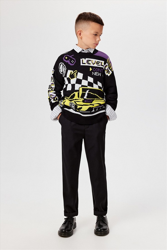 ID товара: 1137132 Состав: 51% Вискоза, 26% Полиэстер, 23% Полиамид Сезон: Осень/Зима Длина: Средняя Фасон: Прямой Рукав: Длинные Вырез горловины: Округлый Рисунок: Фантазийный Декоративные элементы: Принт Основная ткань: Вискоза Стиль: Повседневный Страна бренда: Россия Страна производства: Китай Джемпер детский для мальчиков Conrad черный Комментарии к товару