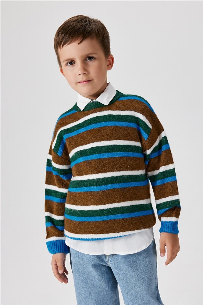 ID товара: 1200490 Состав: 65% Полиэстер, 29% Полиамид, 6% Шерсть Сезон: Осень/Зима Длина: Средняя Фасон: Прямой Рукав: Длинные Вырез горловины: Округлый Рисунок: Полоска Основная ткань: Полиэстер Стиль: Повседневный Страна бренда: Россия Страна производства: Китай Джемпер детский для мальчиков Nico синяя полоска Комментарии к товару