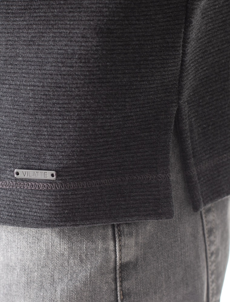 Цельнокроеные длинные рукава дополнены небольшими манжетами, по бокам аккуратные разрезы, которые придают стильный акцент, по краю металлическая нашивка с логотипом бренда. Ворот круглой формы удобно сидит на шее, не создавая дискомфорта.
