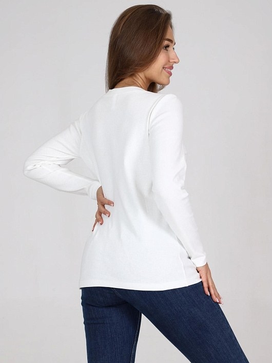 Женский пуловер выполнен из трикотажного приятного к телу полотна "рибана". Не глубокий огруглый вырез и комфортная посадка по фигуре. Модель прямого силуэта, с длинным рукавом, длиной до уровня бедер. Хорошо сочетается с любой одеждой.
