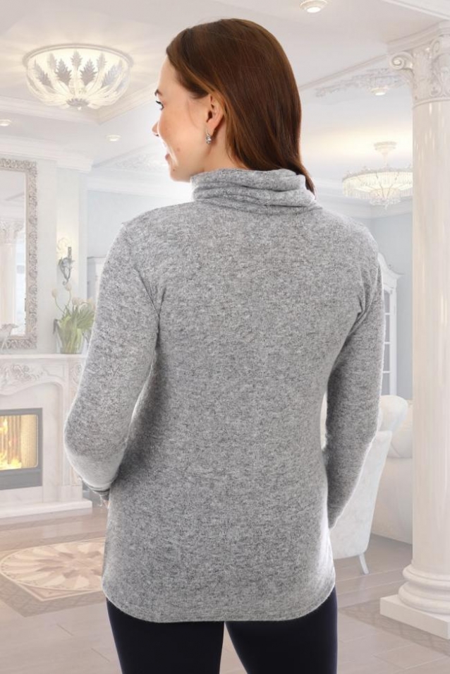 Джемпер из кашемира с воротником-хомут. Лёгкий, мягкий, приятный к телу материал. Печать - имитация вышивки. Ткань не растягивается при стирке и обладает хорошей износостойкостью. Оттенок серого может отличаться от представленного на фото.