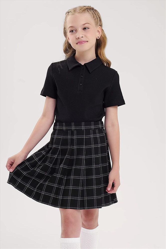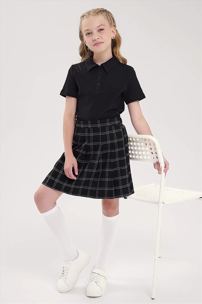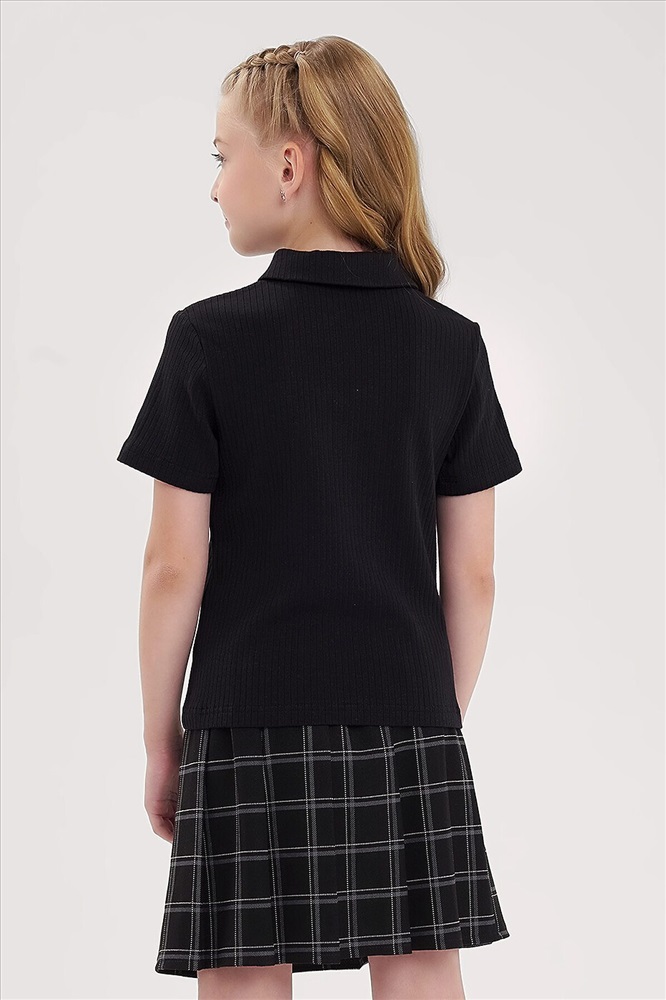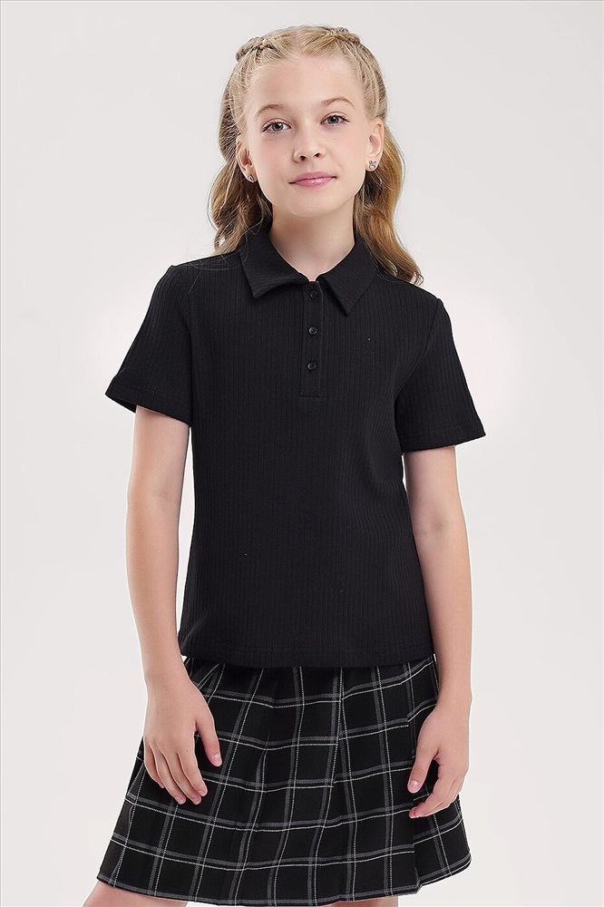 Базовый джемпер из лапши станет отличным дополнением к вашему гардеробу! Модель с коротким рукавом, отложным воротником и планкой на пуговицах. Джемпер отлично подойдет для создания классных повседневных и школьных образов