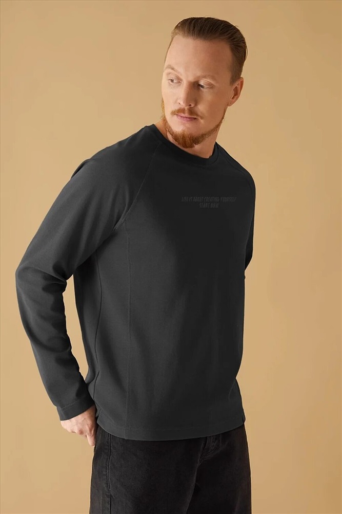 ID товара: 1200342 Состав: 100% Хлопок Сезон: Демисезон Длина: Средняя Фасон: Прямой Рукав: Длинные Вырез горловины: Округлый Рисунок: Надпись Декоративные элементы: Принт Основная ткань: Хлопок Стиль: Базовый Страна бренда: Россия Страна производства: Россия Стильный мужской лонгслив из трикотажного полотна. Изделие с круглым вырезом горловины и длинным рукавом "реглан", в качестве отделки имиджевый принт и фурнитура. Отличный вариант на каждый день. Комментарии к товару