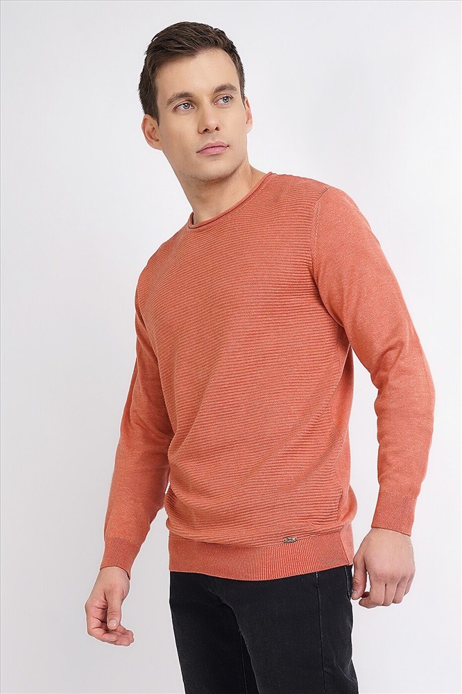 Мужской вязаный джемпер с круглым вырезом горловины и длинным втачным рукавом. Модель из смесовой пряжи с фактурной вязкой, благодаря эластичным манжетам и поясу сохраняет тепло. Модель универсальна, поэтому подойдет с любым низом.