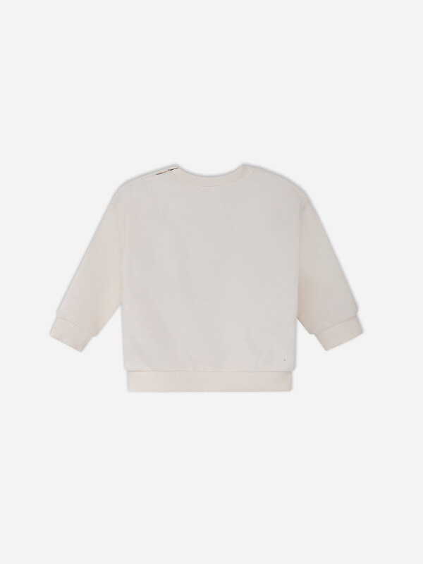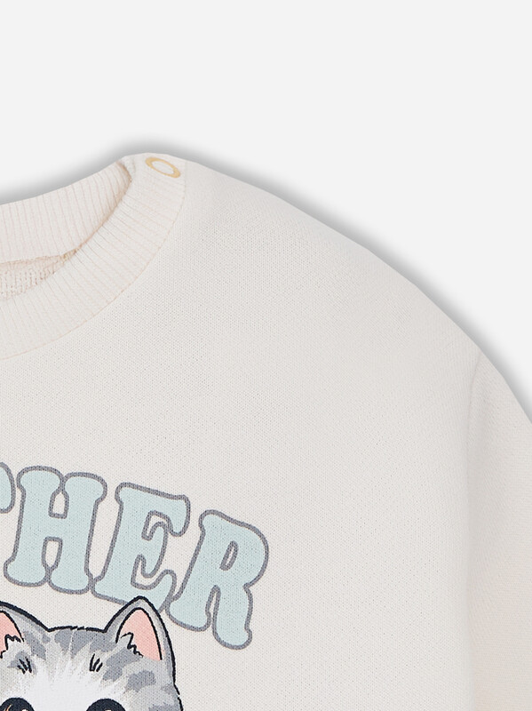 Джемпер свободного силуэта, выполнен из футера с начесом. Спинка и перед цельнокроенные. Рукава втачные, длинные, одношовные. Горловина круглая, окантована бейкой из трикотажной рибаны 2*2 R-6, R22-062.01.360, 96% хлопок; 4% эластан, 230 гр, 165 см. На левом плече застежка книппер 9 мм - 2 шт.