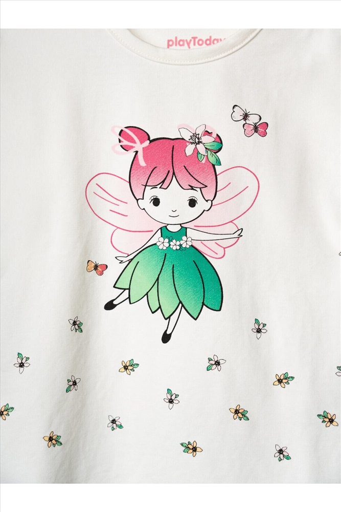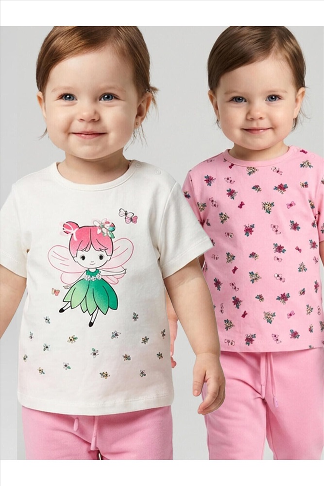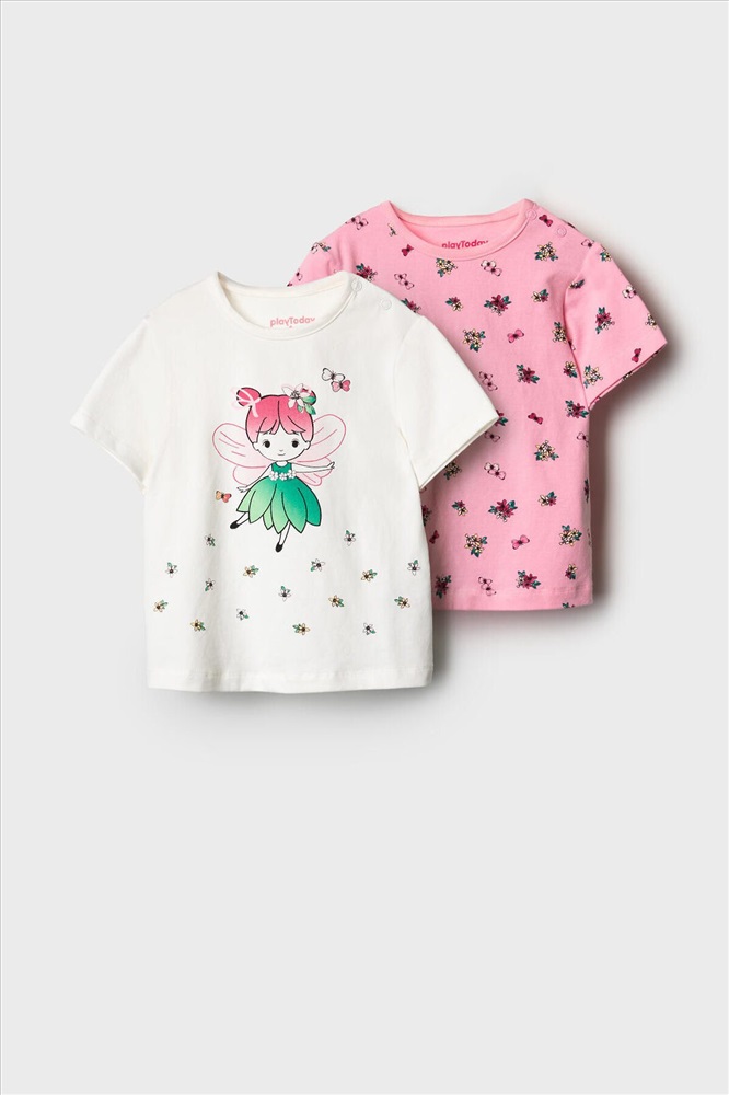 ID товара: 1240073 Состав: 95% хлопок, 5% эластан Сезон: Весна/Лето Набор детских футболок для девочки. Комплект из 2 футболок выполнен из хлопкового трикотажа джерси. Застежка на плече на кнопках для удобного переодевания. Нежные принты с цветами и феями. Комментарии к товару