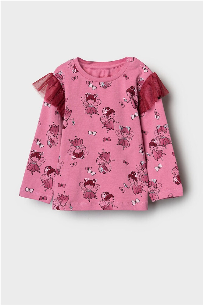 ID товара: 1240043 Состав: 95% хлопок, 5% эластан Сезон: Весна/Лето Рукав: Длинные Страна бренда: Германия Страна производства: Китай Лонгслив детский для девочки. Выполнен из мягкого хлопкового трикотажа джерси с ярким принтом, на котором изображены феи и цветы. Круглая горловина и застёжка на кнопках на плече — для удобства переодевания. Декор из сетки на плечах. Комментарии к товару