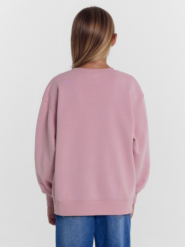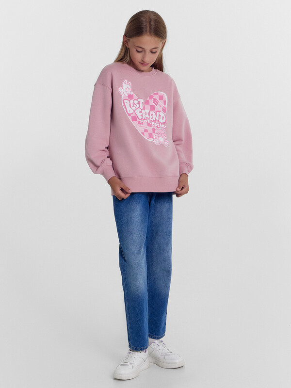Джемпер свободного силуэта. Рукава длинные, втачные. Линия плеча спущена. Перед и спинка цельнокроенные. Горловина круглой формы обработана обтачкой из рибаны. Шов притачивания обтачки распошит. По низу рукавов и джемпера притачены манжеты и пояс из рибаны.