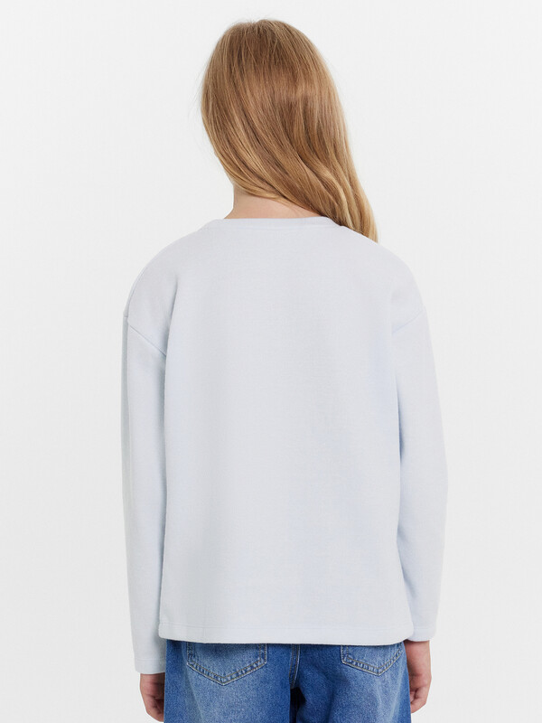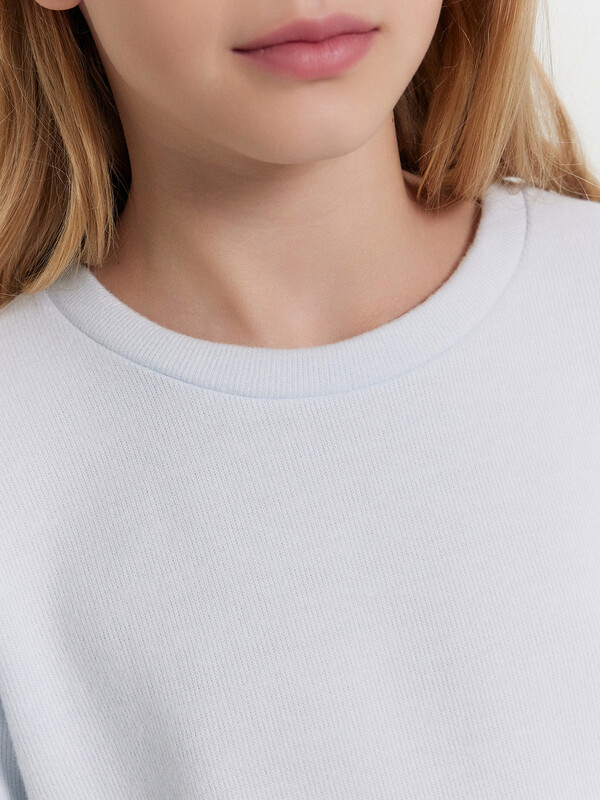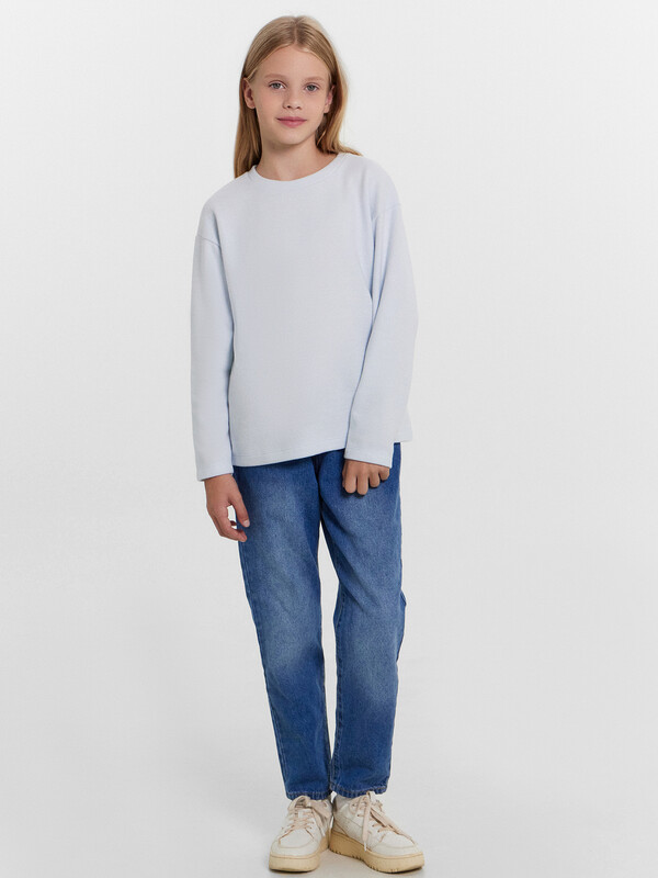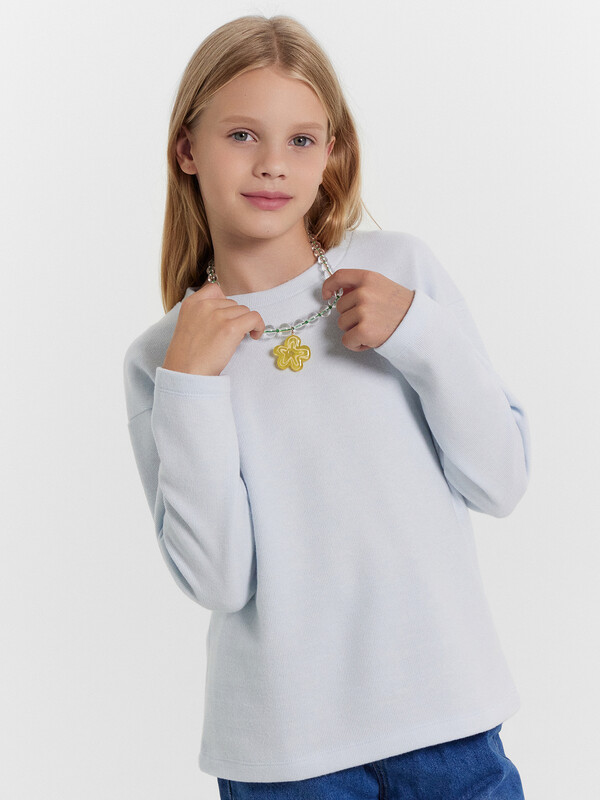 Джемпер прямого силуэта. Горловина круглой формы, с обтачкой из основного полотна. Рукав втачной, длинный. Плечо спущено, пройма углублена. Низ изделия и руковов обработаны швом в подгибку.