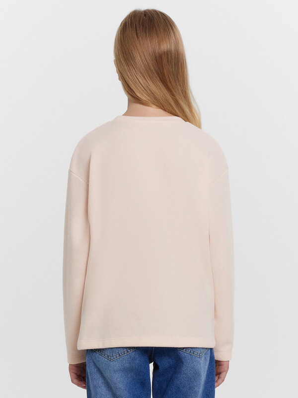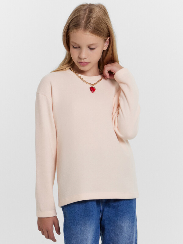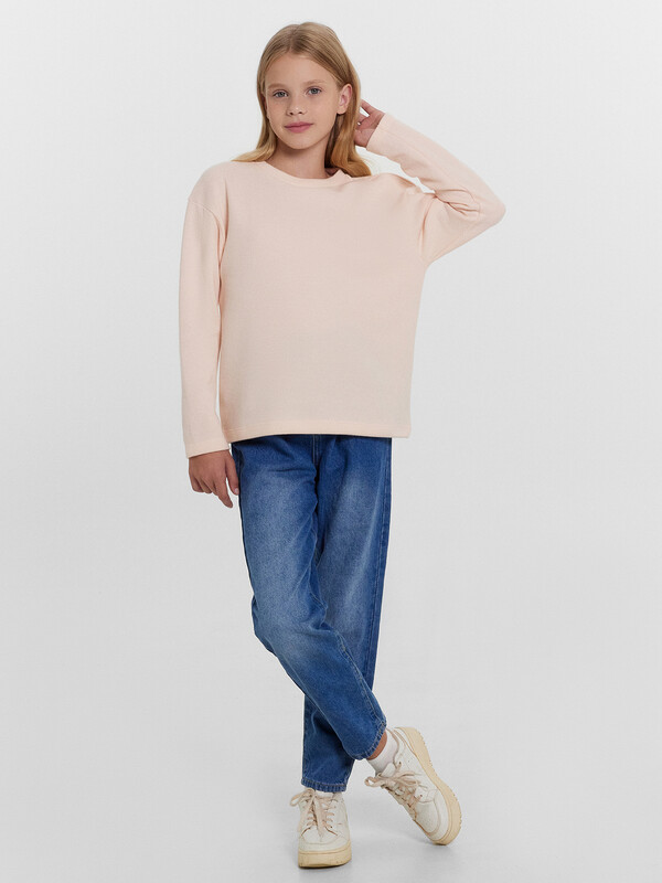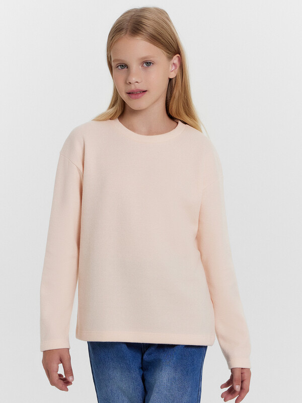 Джемпер прямого силуэта. Горловина круглой формы, с обтачкой из основного полотна. Рукав втачной, длинный. Плечо спущено, пройма углублена. Низ изделия и руковов обработаны швом в подгибку.