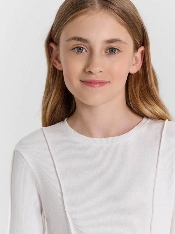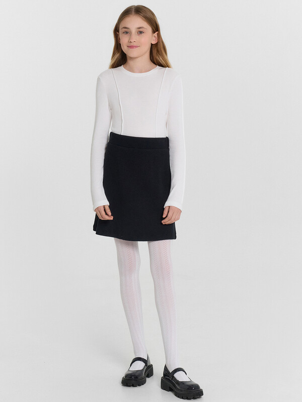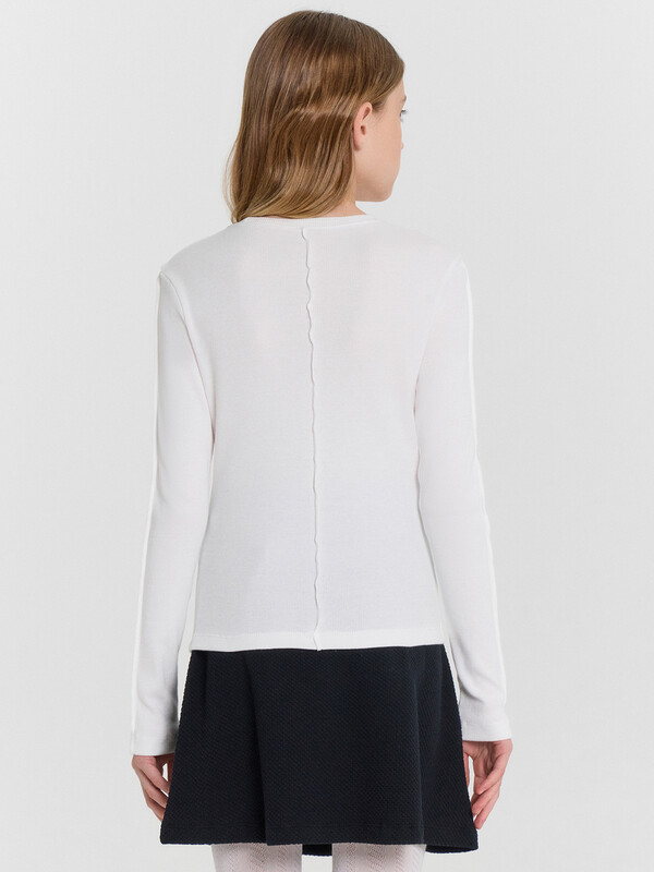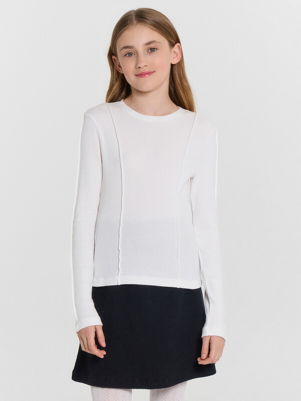 Джемпер для девочек прилегающего силуэта. Вырез горловины круглый.