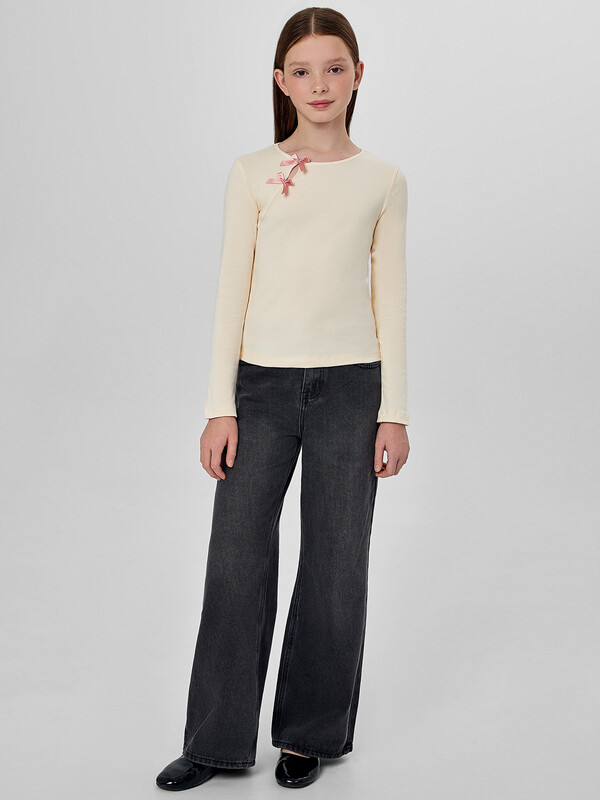 Розовый лонгслив для девочек с очаровательными бантиками станет любимой вещью в гардеробе. Модель прямого силуэта обеспечивает комфорт и свободу движений для активного отдыха и игр.