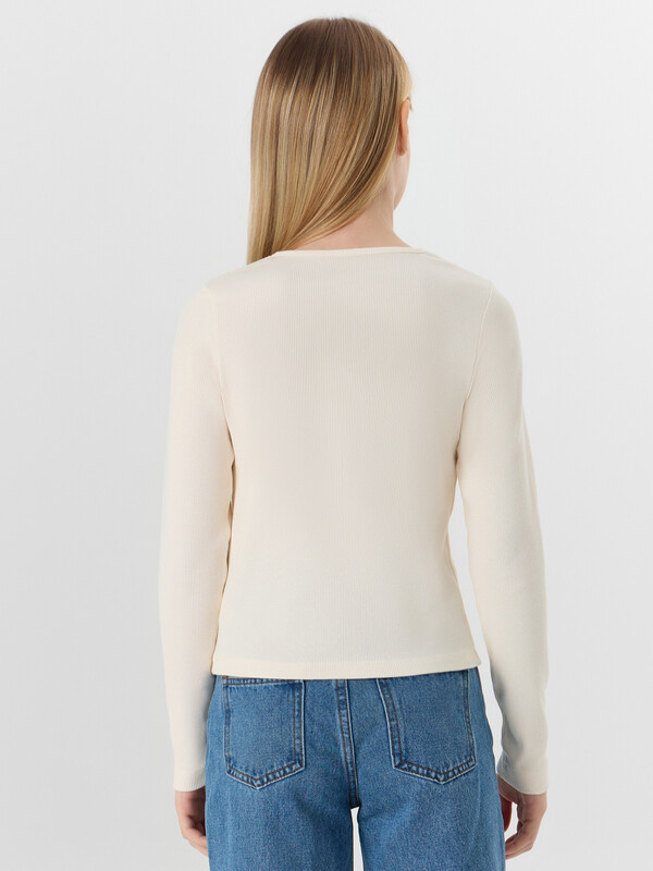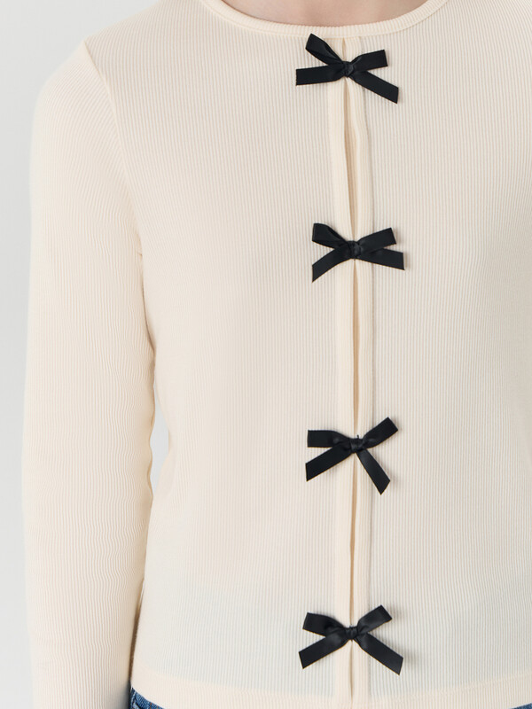 Прилегающий силуэт с округлой горловиной и длинными рукавами создаёт аккуратный и лаконичный вид. Две вертикальные складки спереди и нежные готовые бантики на них становятся главным украшением, добавляя образу лёгкого праздничного настроения. Все края аккуратно обработаны, что гарантирует долговечность и опрятный внешний вид. Состав с преобладанием хлопка и добавлением эластана обеспечивает натуральность, мягкость и идеальную посадку, сохраняющую форму после активного дня. Этот джемпер станет прекрасным выбором для создания нарядного повседневного образа, где важны и удобство и элегантность. 94% хлопок; 6% эластан Комментарии к товару