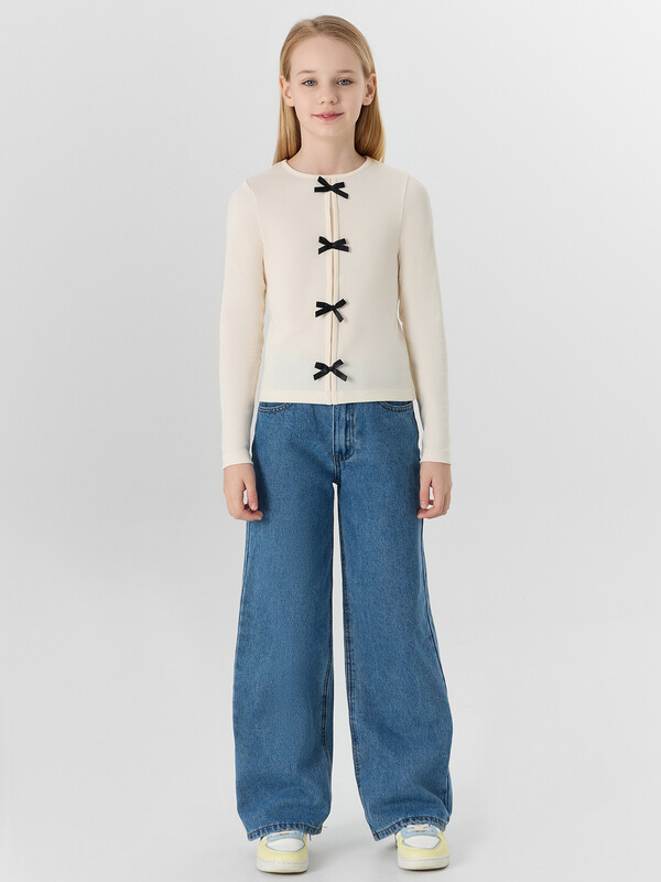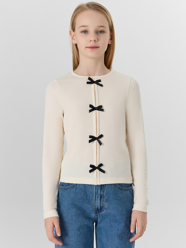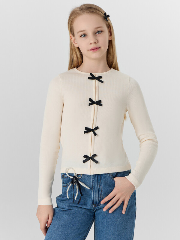 Джемпер для девочек с декоративными бантиками — это воплощение нежности и изящного стиля. Он выполнен из мягкой эластичной рибаны, которая обеспечивает комфортное облегание и свободу движений.