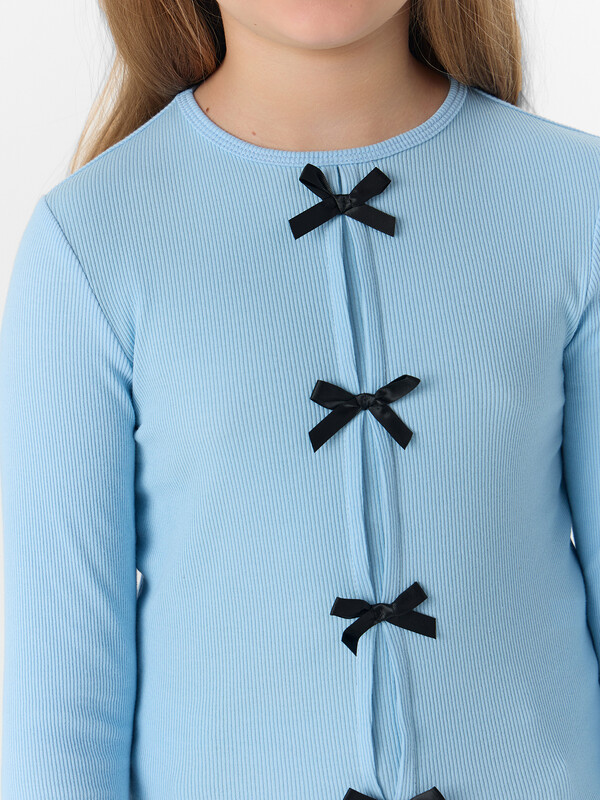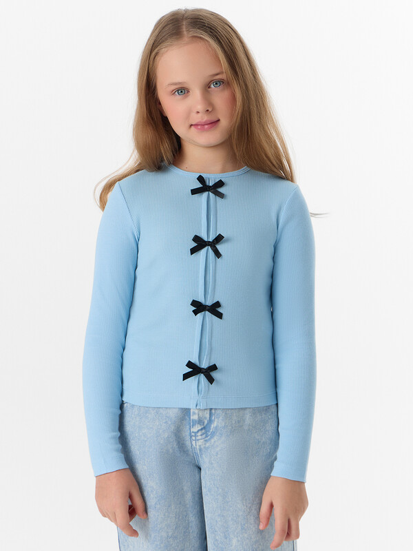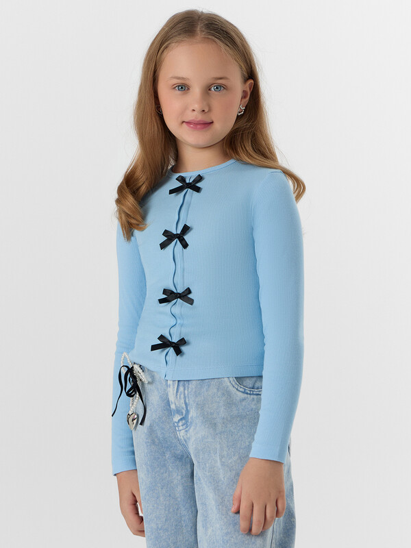 Джемпер для девочек с декоративными бантиками — это воплощение нежности и изящного стиля. Он выполнен из мягкой эластичной рибаны, которая обеспечивает комфортное облегание и свободу движений.