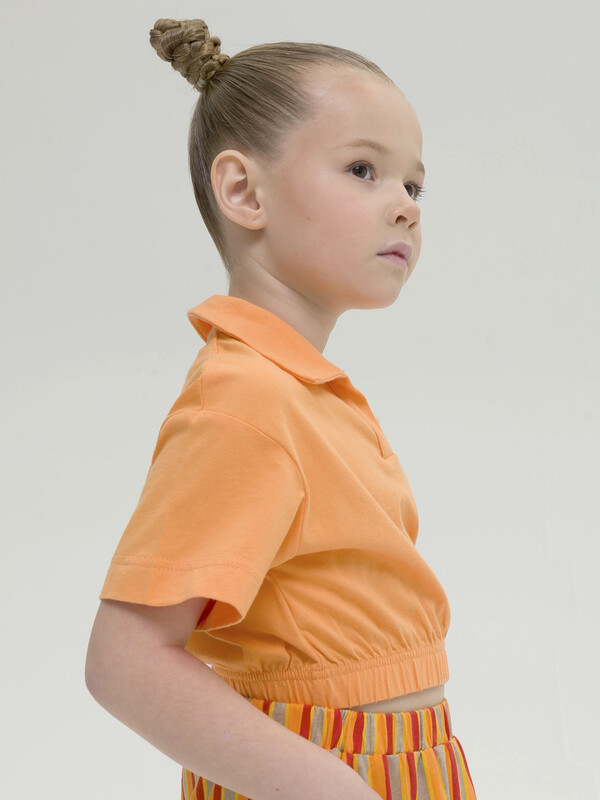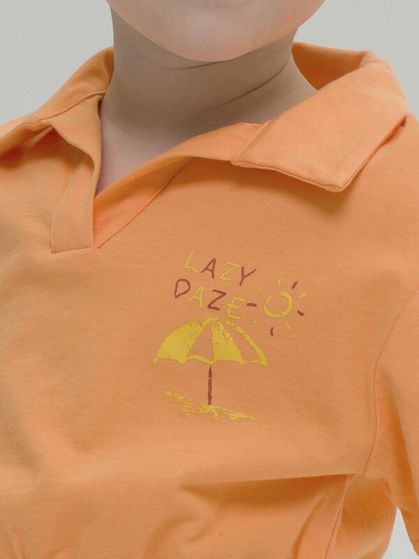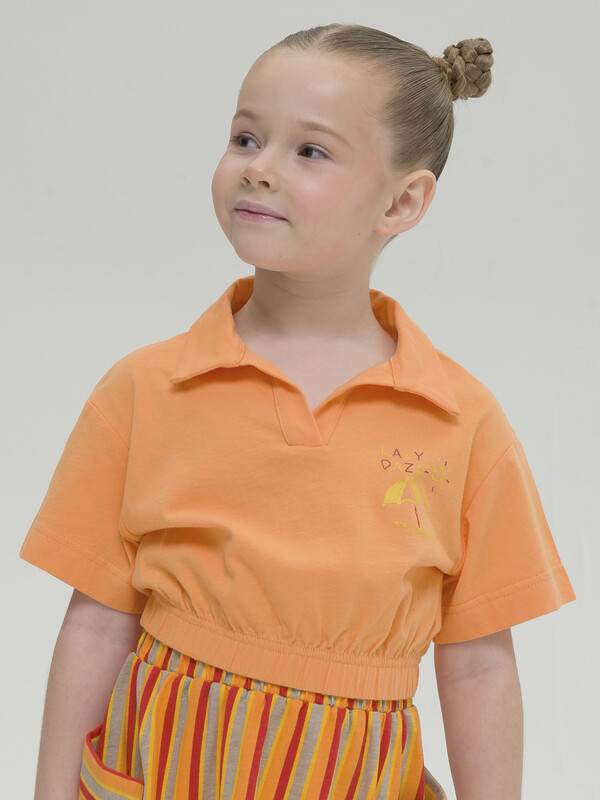 Укороченная футболка-поло для девочки - тренд сезона. Выполнена из хлопкового трикотажа. Не вызывает аллергии и отлично пропускает воздух. Кроп-топ свободного покроя со спущенным плечом и воротником-апаш с расходящейся планкой - для самых модных девочек. Низ изделия присобран на резинку и образует напуск для создания легкого объема. Ненавязчивый принт задаст настроение. Перевод "ленивый день". Отлично сочетается с брюками, юбками и шортами. Дополнит гардероб любой девочки и сделает ее образ стильным и уникальным.