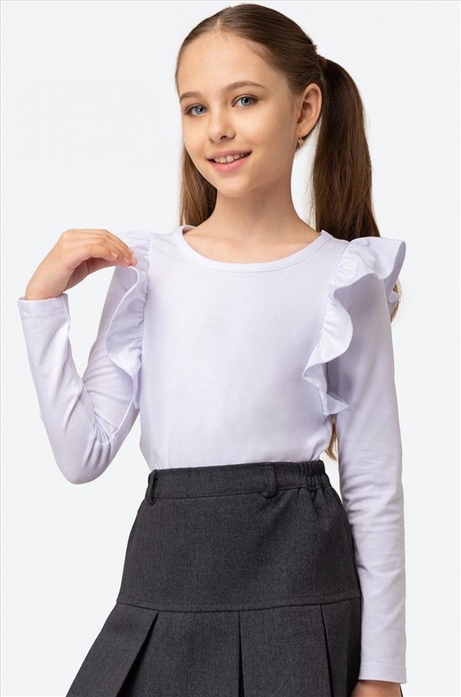 Белый лонгслив для мечтательных натур!Детский лонгслив из легкого трикотажа станет идеальным дополнением к школьной форме для девочек и девочек-подростков. Воздушные крылышки, длинный рукав и базовый белый цвет – важные детали, которые делают лонг для детей красивым и опрятным.