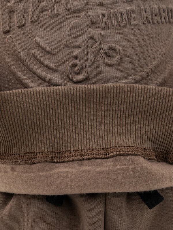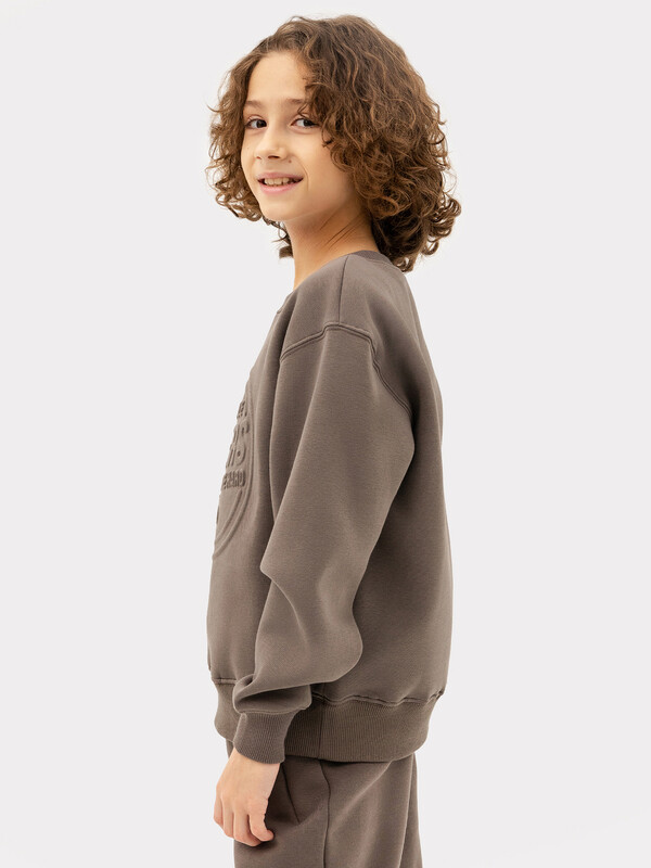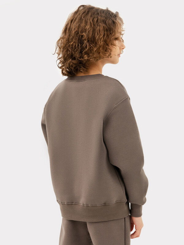 Джемпер свободного силуэта. Рукава длинные, втачные. Линия плеча спущена. Перед и спинка цельнокроенные. Горловина круглой формы обработана обтачкой из рибаны. По низу рукавов и джемпера притачены манжеты и пояс из рибаны.