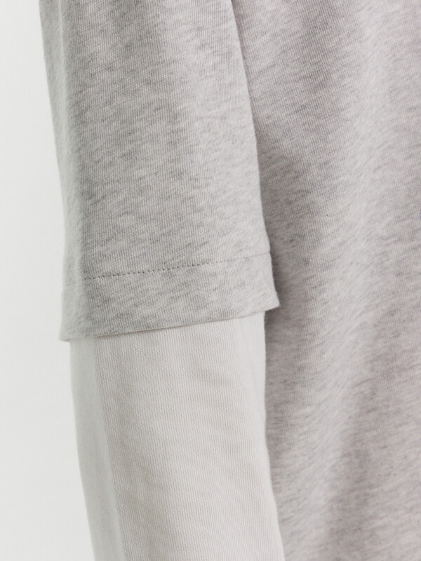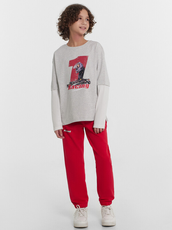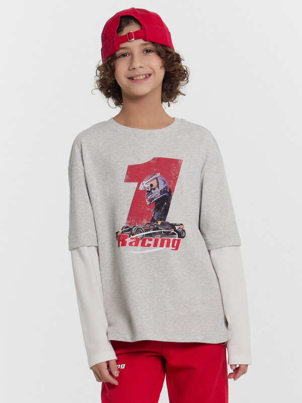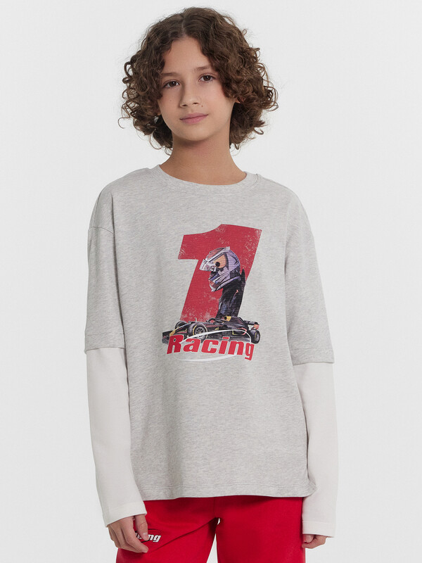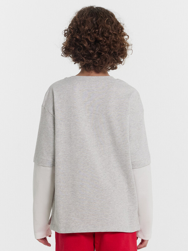 Джемпер для мальчиков свободного силуэта. Рукава втачные. Низ рукавов обработан швом вподгибку. Горловина круглой формы, обтачка из рибаны. По боковым швам разрезы, спинка длинее переда. Низ джемпера обработан швом вподгибку.
