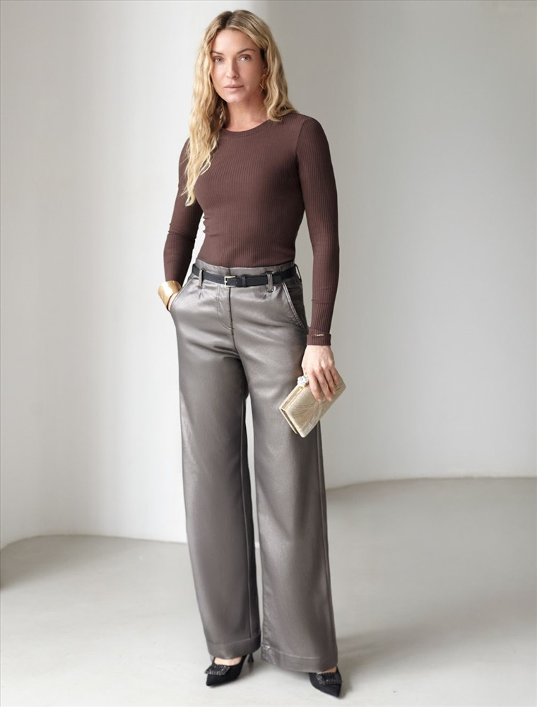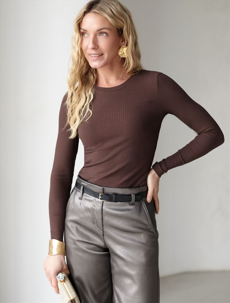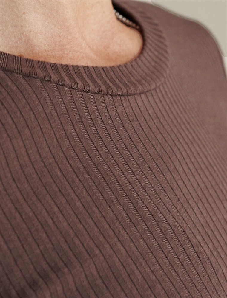 Джемпер с круглым вырезом выполнен из фактурного трикотажа в широкий рубчик. Модель идеально сидит по фигуре не сковывая движения. Хлопковый трикотаж поддерживает оптимальную температуру тела, поэтому в изделии будет комфортно в течении всего дня. Наличие эластана в составе гарантирует формоустойчивости. Базовая модель впишется в любой гардероб.