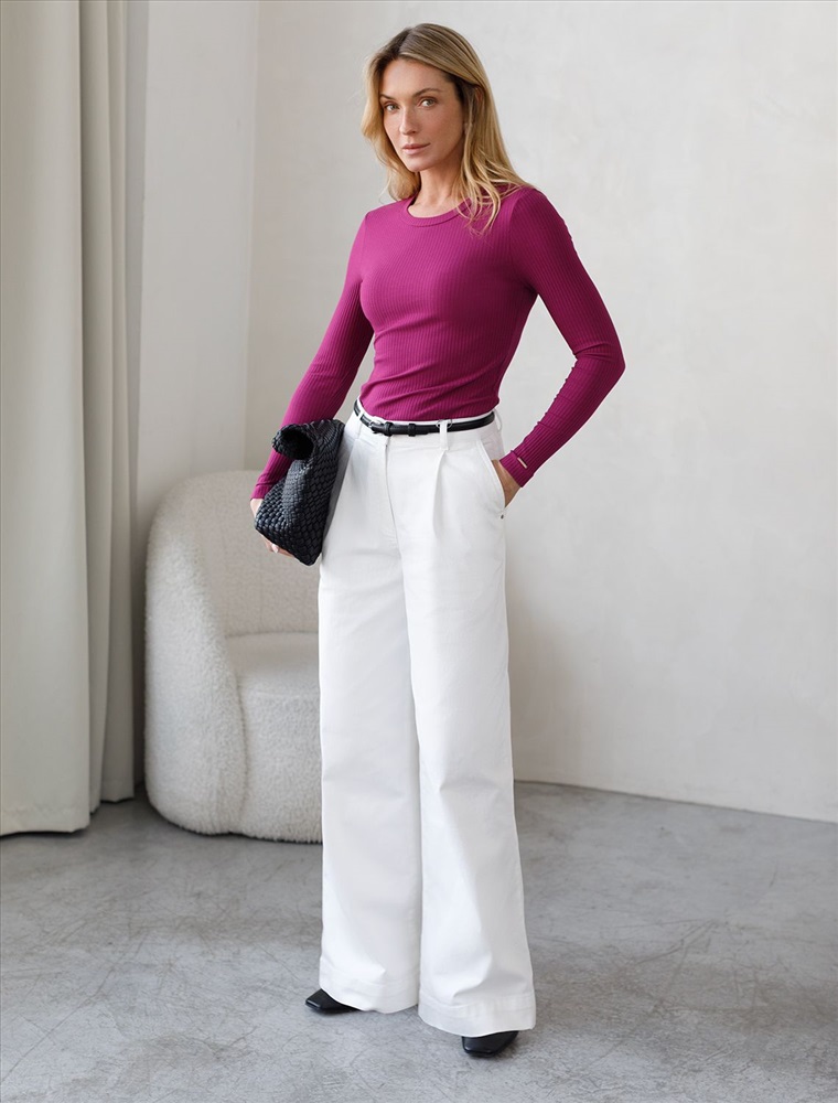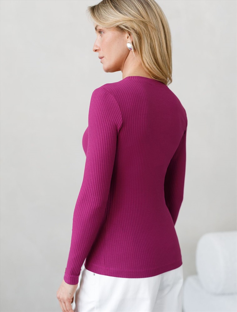 Джемпер с круглым вырезом выполнен из фактурного трикотажа в широкий рубчик. Модель идеально сидит по фигуре не сковывая движения. Хлопковый трикотаж поддерживает оптимальную температуру тела, поэтому в изделии будет комфортно в течении всего дня. Наличие эластана в составе гарантирует формоустойчивости. Базовая модель впишется в любой гардероб.