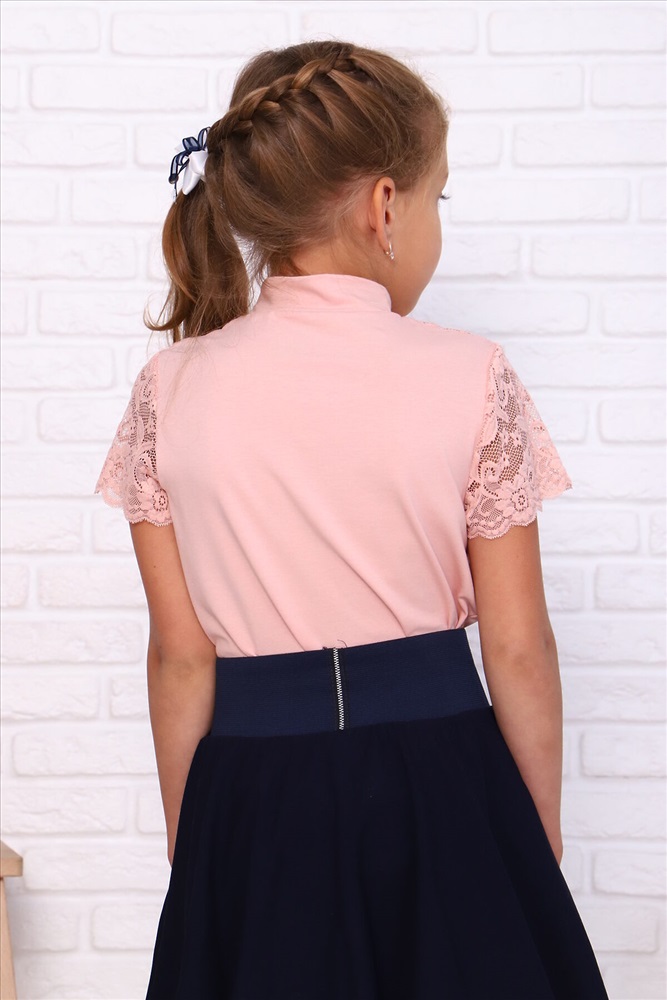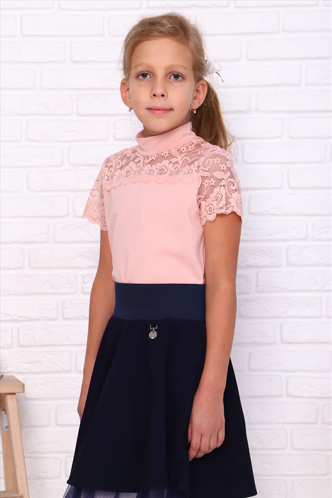 ID товара: 883041 Состав: 92% Хлопок; 8% Лайкра Сезон: Весна/Лето Длина: Средняя Фасон: Полуприлегающий Рукав: Короткий Вырез горловины: Воротник-стойка Основная ткань: Кулирка с лайкрой Стиль: Повседневный Страна бренда: Россия Страна производства: Россия Джемпер для девочек младшего и старшего школьного возраста, из трикотажного однотонного полотна кулирка с лайкрой и эластичного кружева ( дизайн и ширина кружева может меняться). Джемпер полуприлегающего силуэта, с втачным коротким рукавом, с воротником стойкой. Спереди отрезная кружевная кокетка. На спинке отсутствуют линии членения. Рукав одношовный, выполнен из эластичного кружева. Низ изделия подогнут. Комментарии к товару