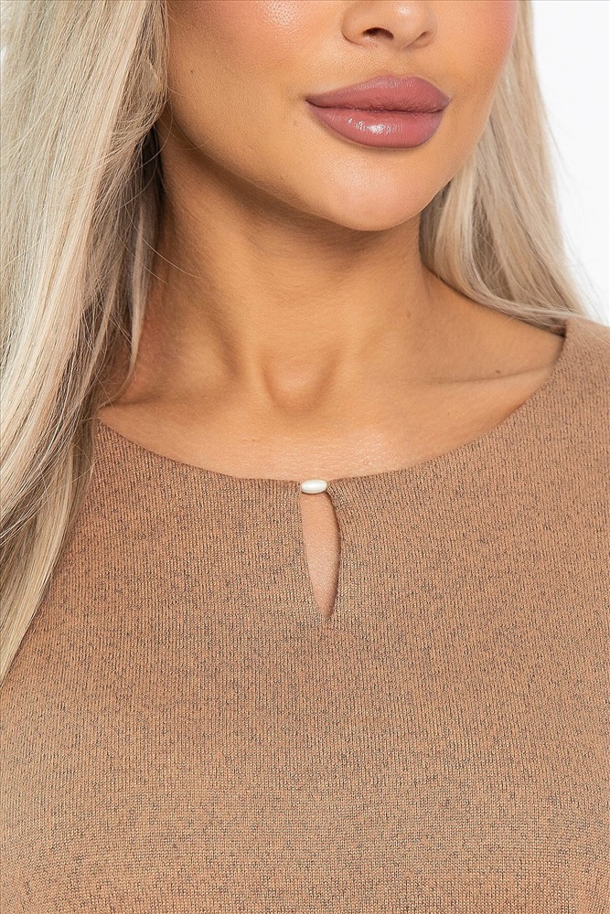 ID товара: 1220347 Состав: 65% Полиэстер, 30% Вискоза, 5% Эластан Сезон: Демисезон Длина: Средняя Фасон: Свободный Рукав: 7/8 Вырез горловины: Округлый Основная ткань: Полиэстер Стиль: Повседневный Страна бренда: Россия Страна производства: Россия Состав : 65% полиэстер, 30% вискоза, 5% эластан Материал : трикотаж Цвет : бежевый Принт : отсутствует Силуэт : свободный Карманы : отсутствуют Подкладка : отсутствует Вид застежки : без застёжки Декоративные элементы : декоративная бусинка в разрезе на груди Длина : 46-60 см, 48-62 см, 50-62 см, 52-63 см, 54-63 см Отснято с брюками Б13889-33М Погрузитесь в уют и стиль с нашим джемпером бежевого цвета, который станет универсальным дополнением вашего гардероба. Декоративная бусинка в вырезе на груди добавляет нотку изысканности и делает джемпер уникальным. Рукава и пояс на манжете. Этот джемпер идеально подходит как для повседневного, так и для праздничного стиля – его легко сочетать с юбками, брюками и джинсами, создавая разнообразные образы для любого случая. Внимание! Рекомендуем ориентироваться на размерную сетку и выбирать свой привычный размер, согласно размерной таблице. *Допуск отклонения длины при массовом производстве 1-3 см является нормой. Уход за изделием: Ручная стирка или стирка в машине при температуре до 30 °C, деликатный режим. Не использовать отбеливатели. Разрешена глажка при температуре до 110 °C. При глажке использовать специальную насадку на подошве утюга, гладить с паром. Не замачивать и не выжимать. Стирать изделие наизнанку, отдельно от других вещей. Комментарии к товару