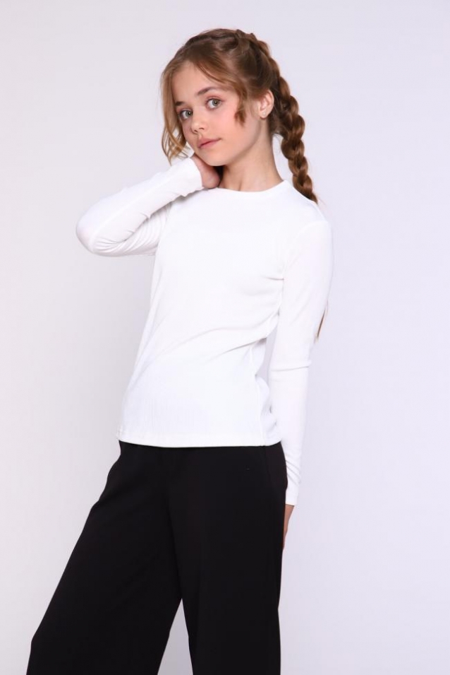 Джемпер для девочки нежной расцветки из полотна в рубчик лапша - отличный вариант как для школьных будней, так и для внешкольных мероприятий. Мягкое трикотажное изделие не только невероятно комфортно в носке, но еще и не деформируется при стирке. Водолазка нежных цветов гармонично будут сочетаться с любыми предметами гардероба вашей принцессы.