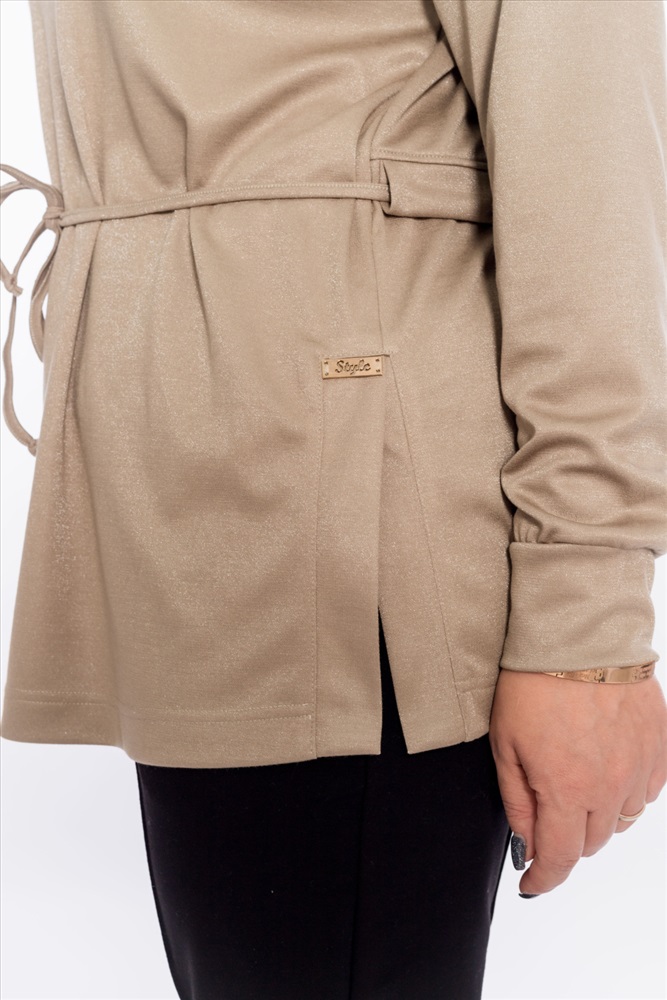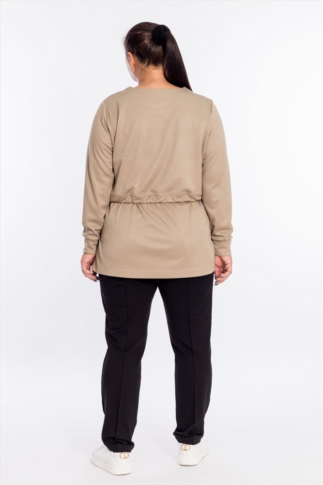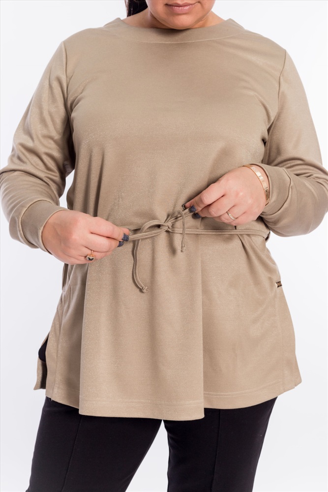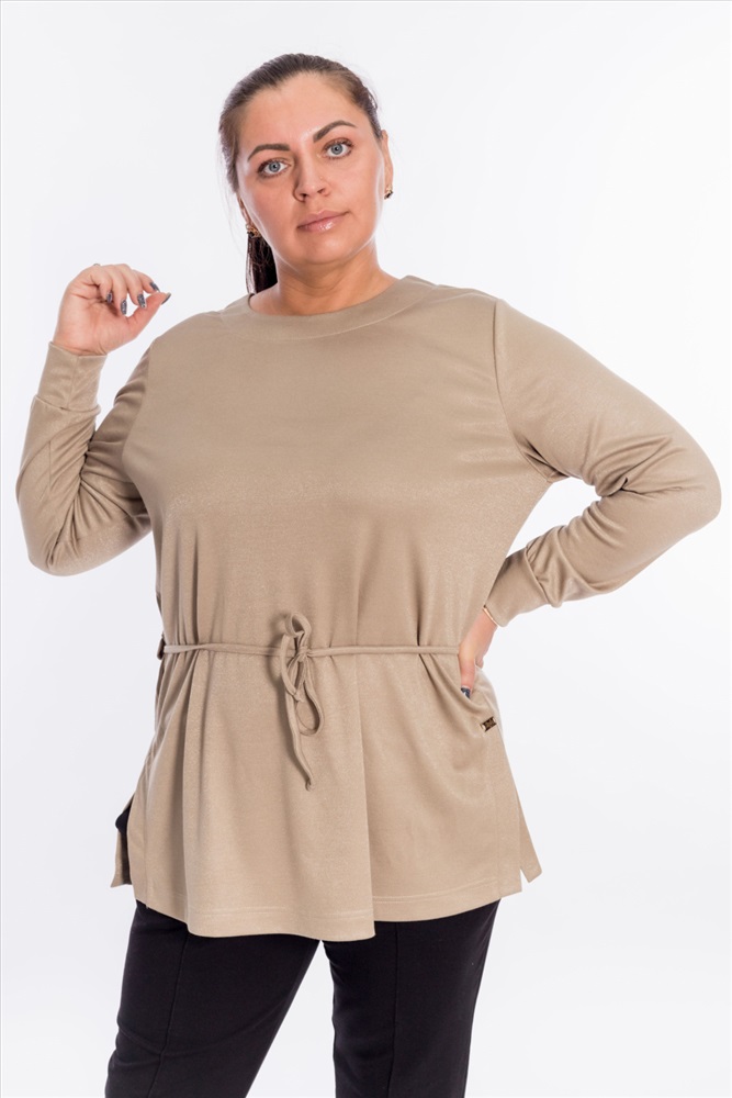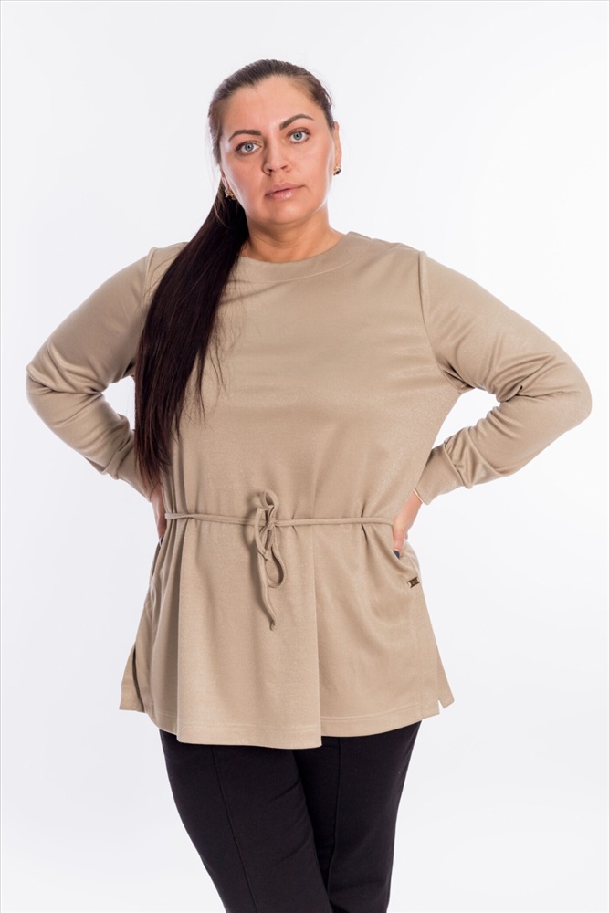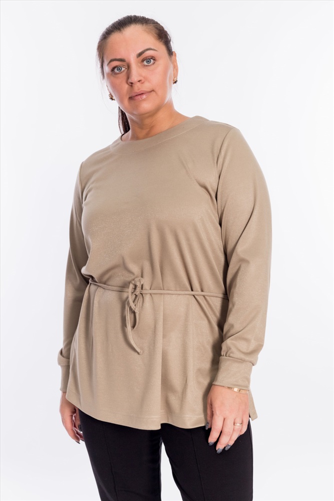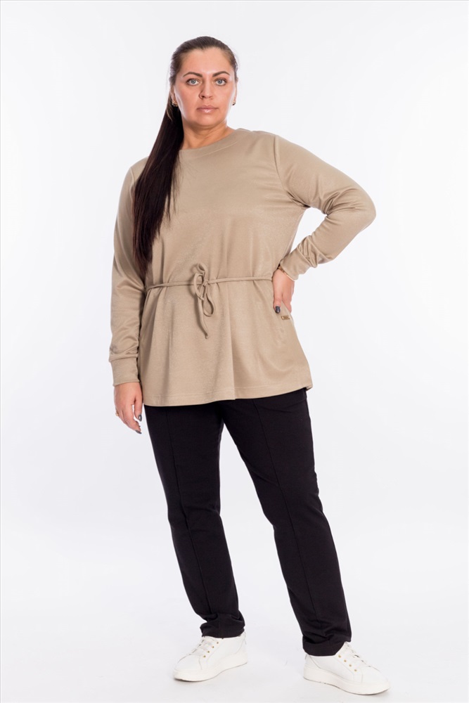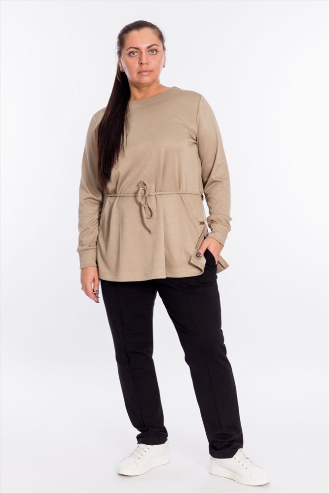 С капюшоном: Нет С карманами: Нет Сезон: Всесезонный Силуэт: Свободный Состав: Полиэстер 80% Лайкра 20% Цвет Номенклатуры: хаки Джемпер выполнен из полотна "академик" с люрексом. С длинным втачным рукавом. Сзади по талии кулиска для шнура. По бокам разрезы с втачными планками. Комментарии к товару