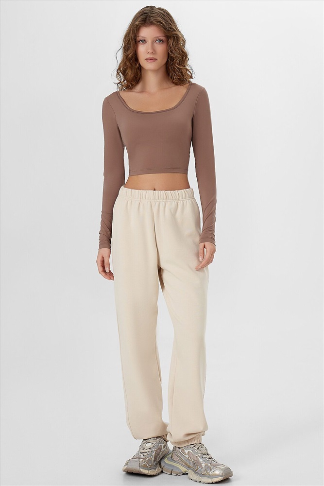 Укороченный крой с аккуратной горловиной, оформленной бейкой из основного полотна, придает этому джемперу для занятий спортом стильный современный вид. Длинные рукава и продуманная подкладка обеспечивают комфорт при интенсивных тренировках, а эластичная тесьма по нижнему срезу гарантирует надежную фиксацию.