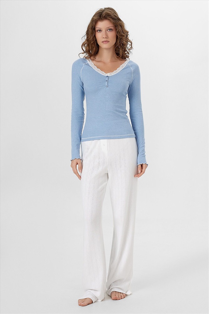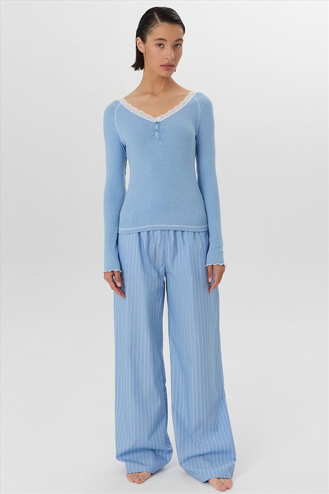 Легкая присборка в области груди мягко подчеркивает фигуру. Удобный рукав реглан с контрастной отделкой швов обеспечивает полную свободу движений - вы сможете комфортно читать в кровати или заниматься утренней гимнастикой.