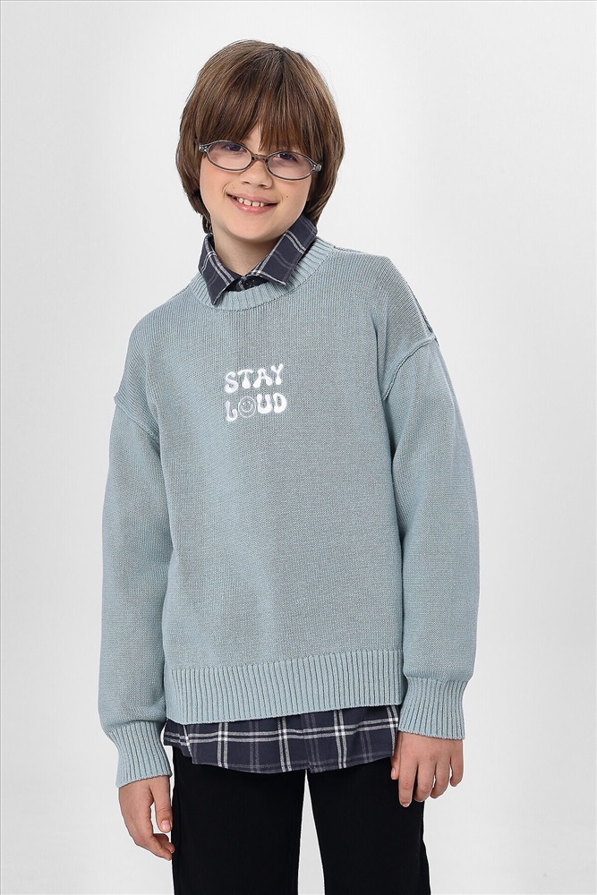ID товара: 1210020 Состав: 100% Хлопок Сезон: Осень/Зима Длина: Средняя Фасон: Свободный крой Рукав: Длинные Вырез горловины: Округлый Рисунок: Надпись Декоративные элементы: Вышивка Основная ткань: Хлопок Стиль: Повседневный Уход: Деликатная стирка при 30 градусах Страна бренда: Беларусь Страна производства: Беларусь Джемпер для мальчиков Комментарии к товару