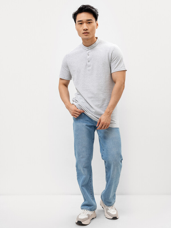 Стильная футболка поло с оригинальным воротником-стойкой и удобной застежкой на 3 пуговицы. Благодаря лаконичному дизайну, прямому силуэту и комфортной длине до середины бедер она наверняка станет любимой в гардеробе, ведь отлично подходит практически ко всему.