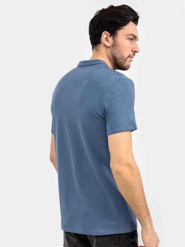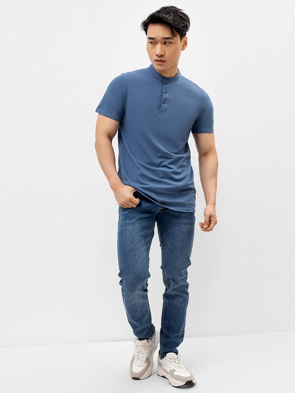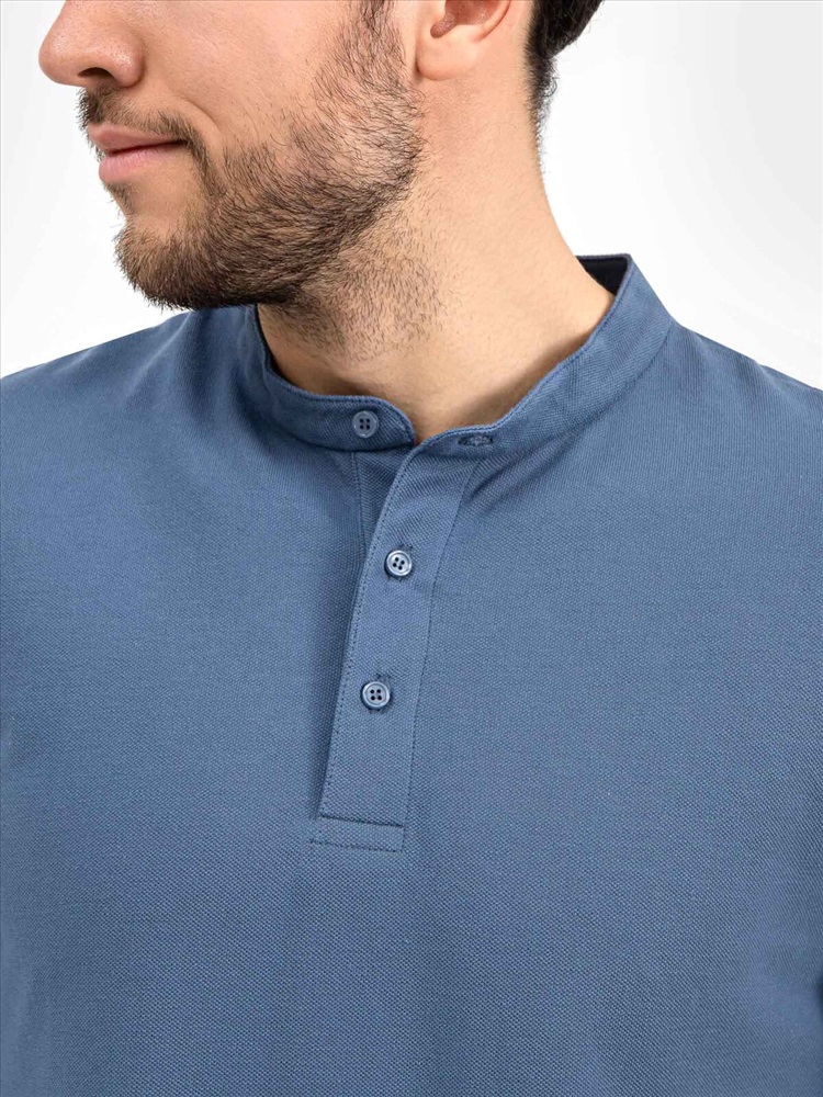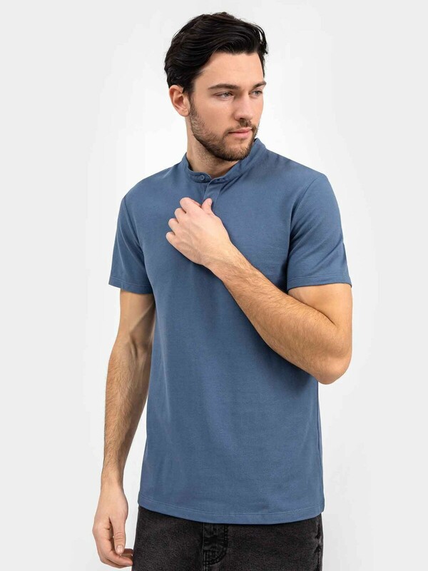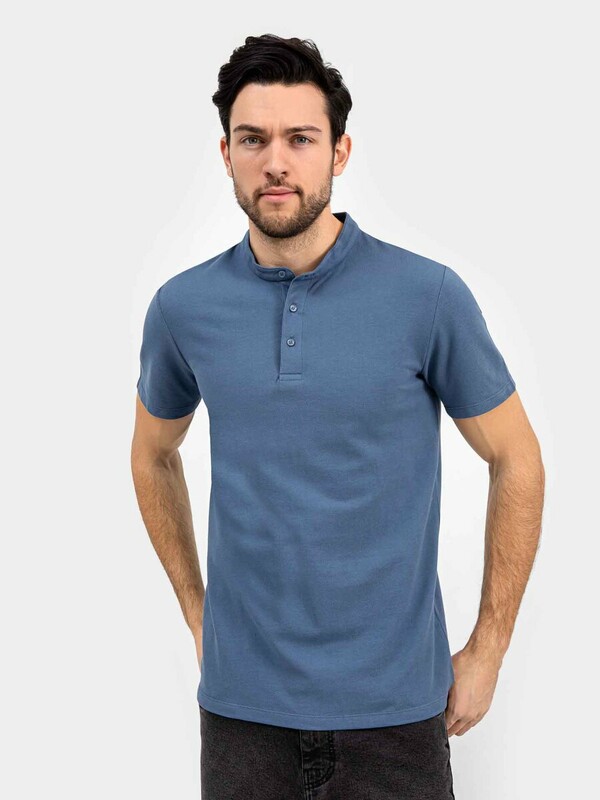 Стильная футболка поло с оригинальным воротником-стойкой и удобной застежкой на 3 пуговицы. Благодаря лаконичному дизайну, прямому силуэту и комфортной длине до середины бедер она наверняка станет любимой в гардеробе, ведь отлично подходит практически ко всему.