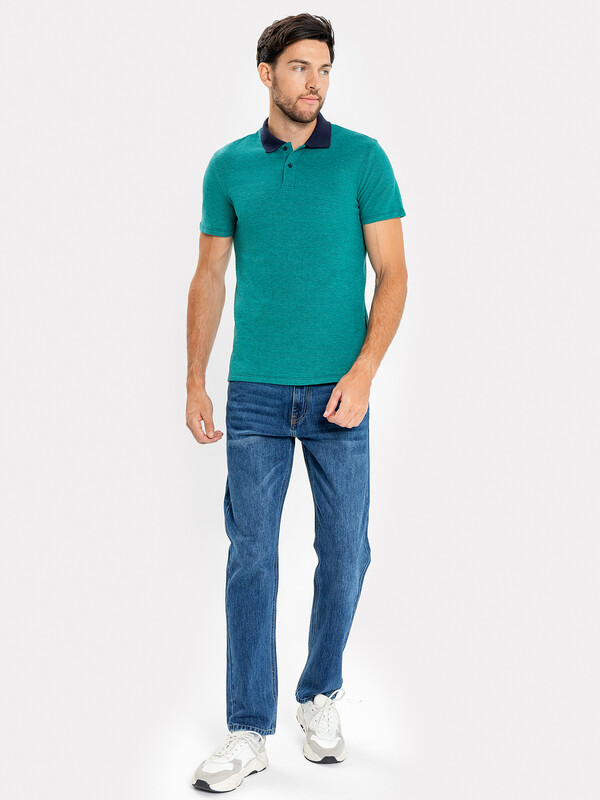 Джемпер мужской «поло» прилегающего силуэта из трикотажного полотна пике. Горловина круглой формы со стояче-отложным воротником из довяза. Центральная застежка планка на пуговицы. Шов горловины спинки обработан хб тесьмой. Рукав втачной, короткий. В боковых швах обработаны разрезы.