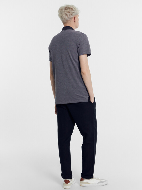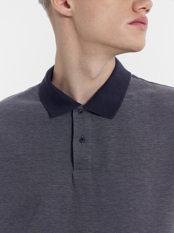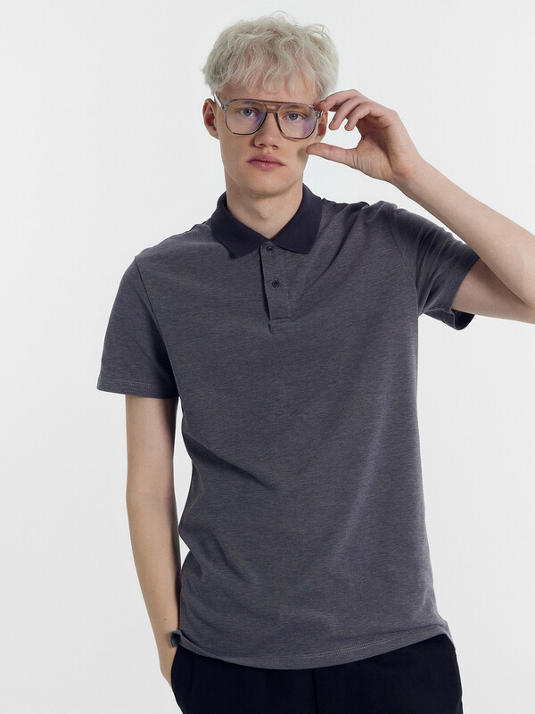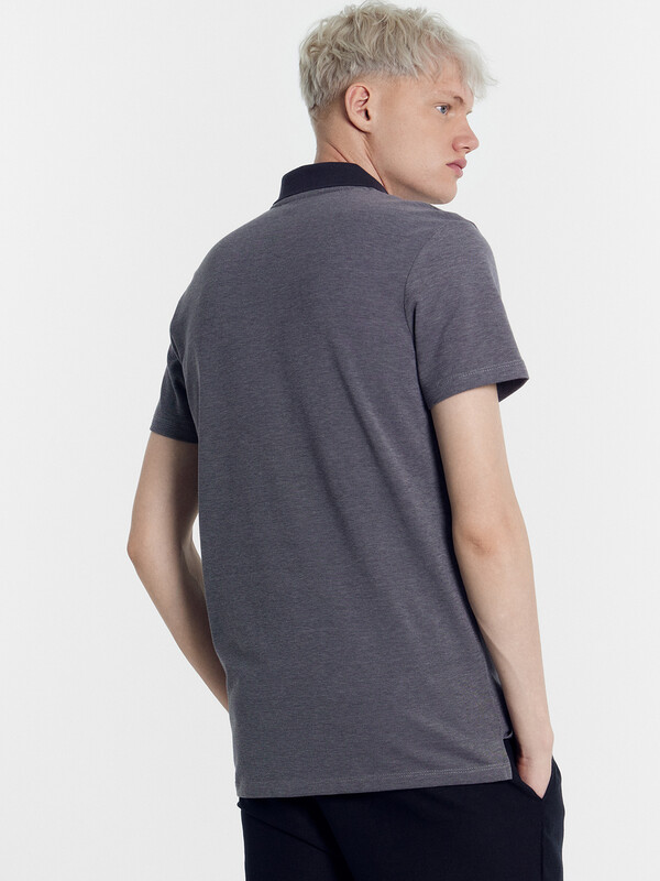 Джемпер мужской «поло» прилегающего силуэта из трикотажного полотна пике. Горловина круглой формы со стояче-отложным воротником из довяза. Центральная застежка планка на пуговицы. Шов горловины спинки обработан хб тесьмой. Рукав втачной, короткий. В боковых швах обработаны разрезы.