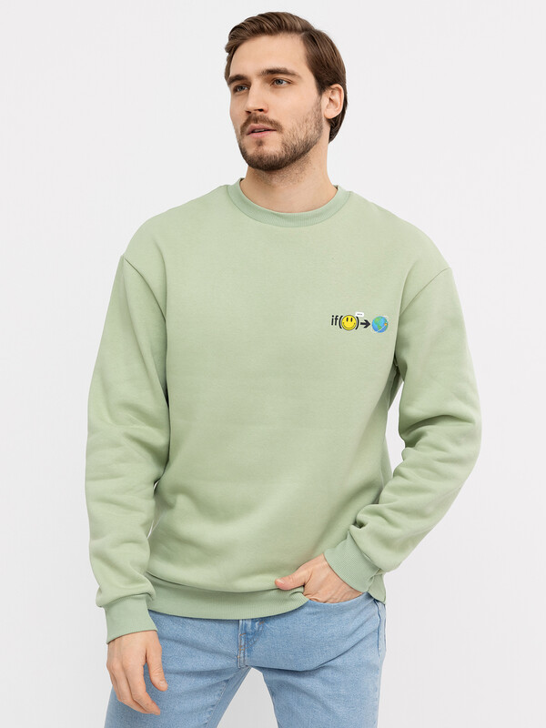 Теплый мужской свитшот из трикотажного футера с нежным подчесом. Силуэт прямой, вырез классический – круглый, не глубокий. Рукава длинные, на манжетах из рибаны. Спущенная линия плеча дарит свободу движений. Пояс, проходящий по нижнему срезу, также сделан из рибаны. Отличный свитшот для городских образов.