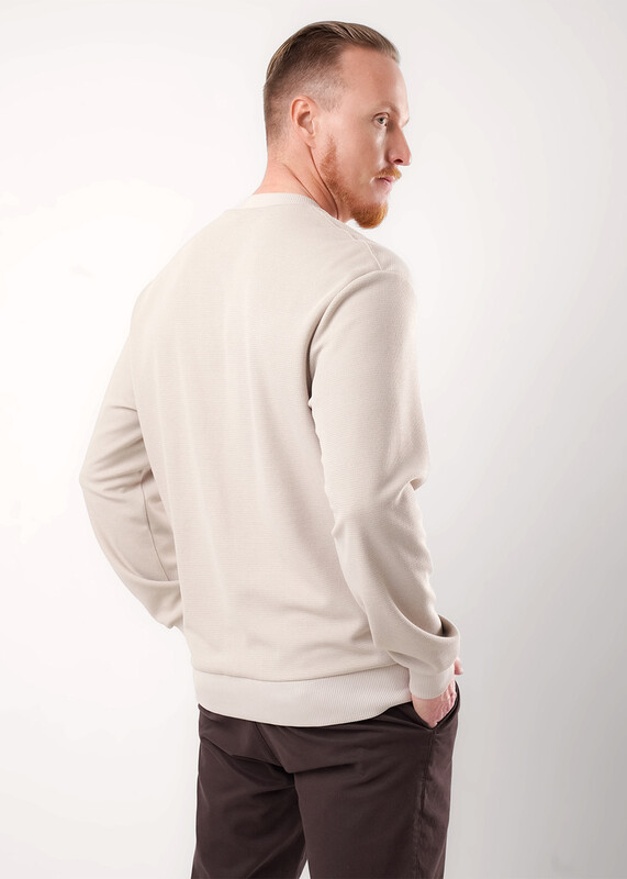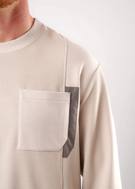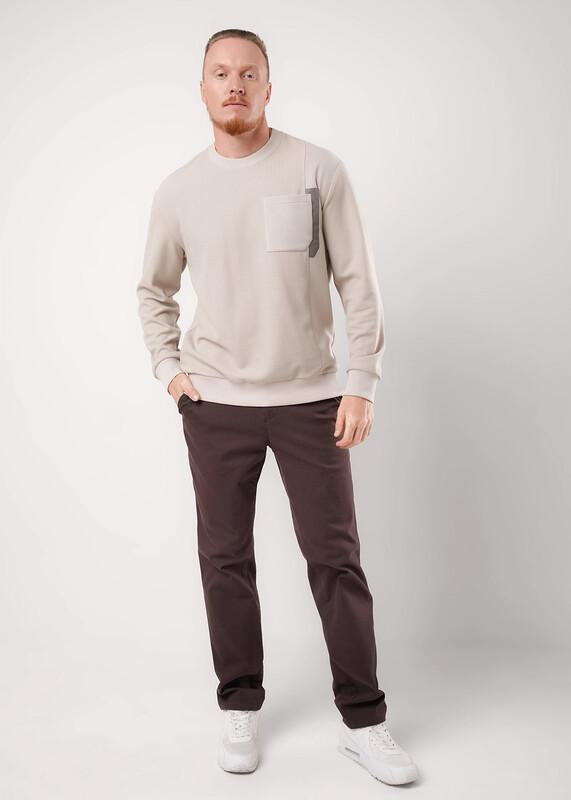 Стильный мужской комбинированный джемпер из трикотажного фактурного полотна. Изделие с круглым вырезом горловины и длинным рукавом на манжете. Модель дополняется нагрудным карманом. Отличный вариант на каждый день и встреч с друзьями.